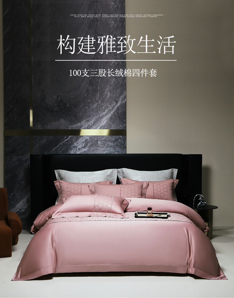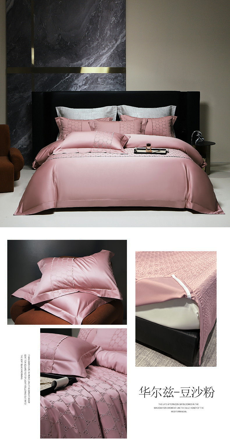 OL家纺 2023新款100支双股长绒棉床盖夹棉提花四件套 华尔兹-豆沙粉