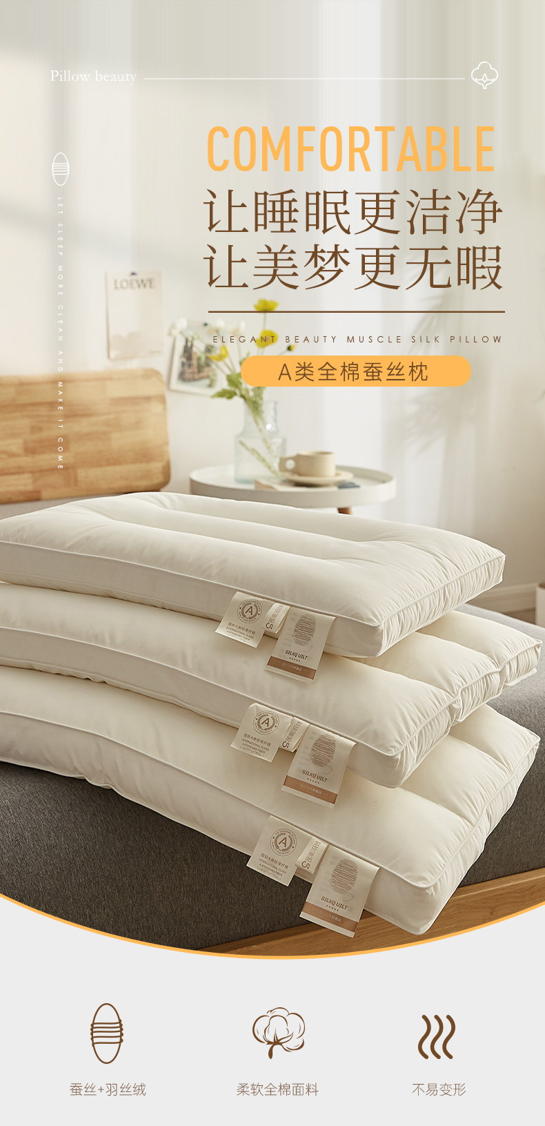 商品名称:(总)乐可 2023新款A类全棉蚕咝枕 枕头枕芯