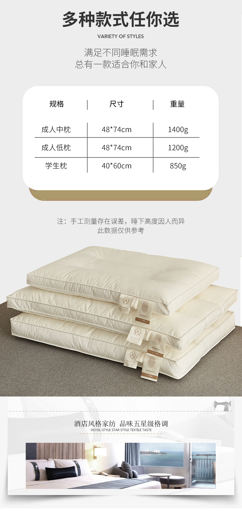 (总)乐可 2025新款黑天鹅酒店枕A类全棉枕头枕芯,黑天鹅酒店枕-中枕,黑天鹅酒店枕-高枕