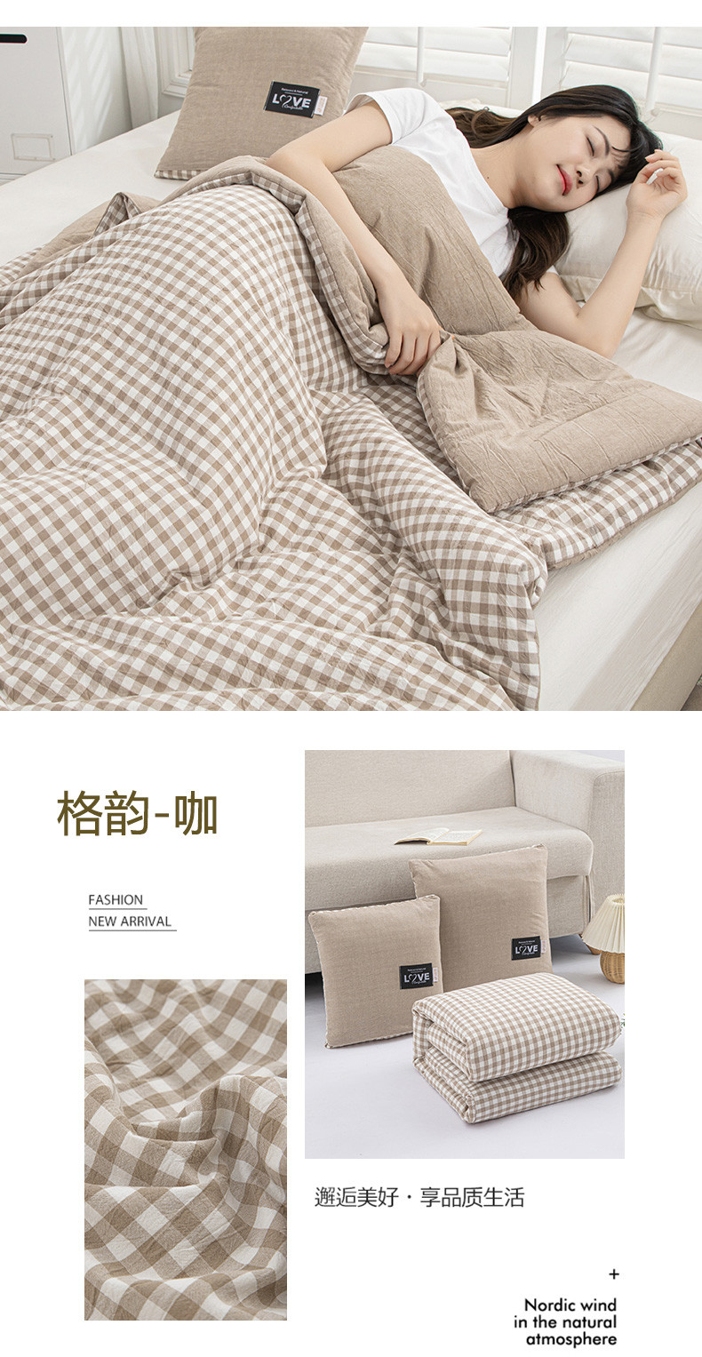 商品名称:翰轩家居 2023新款全棉色织水洗棉大豆抱枕被 格韵-咖
