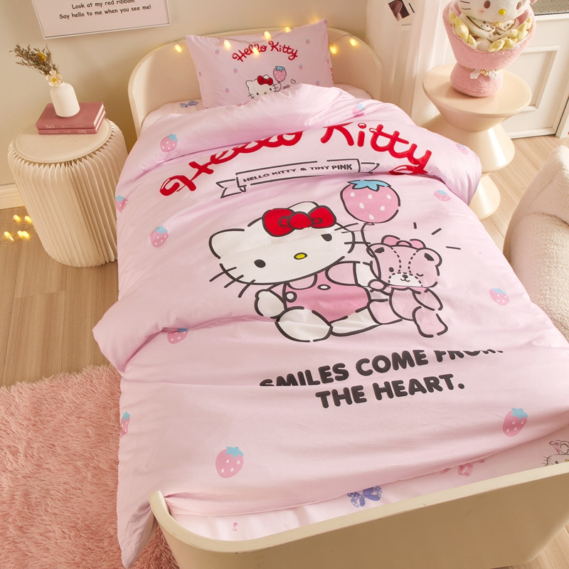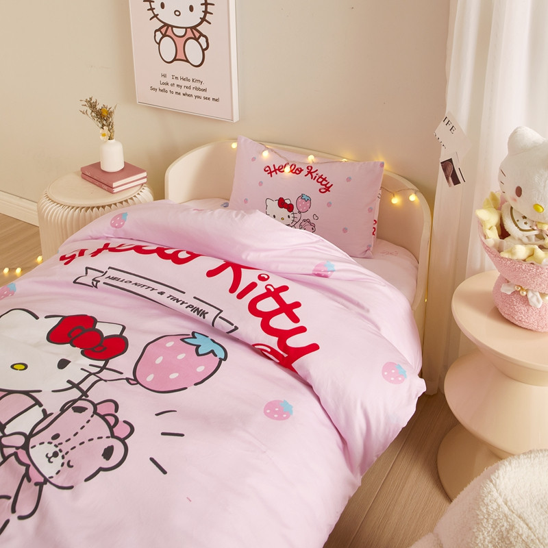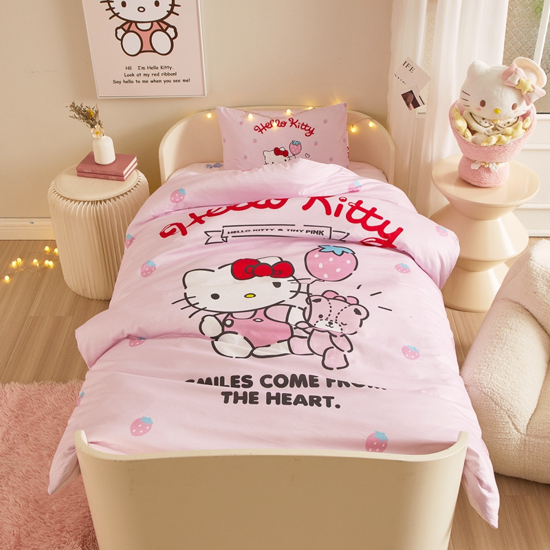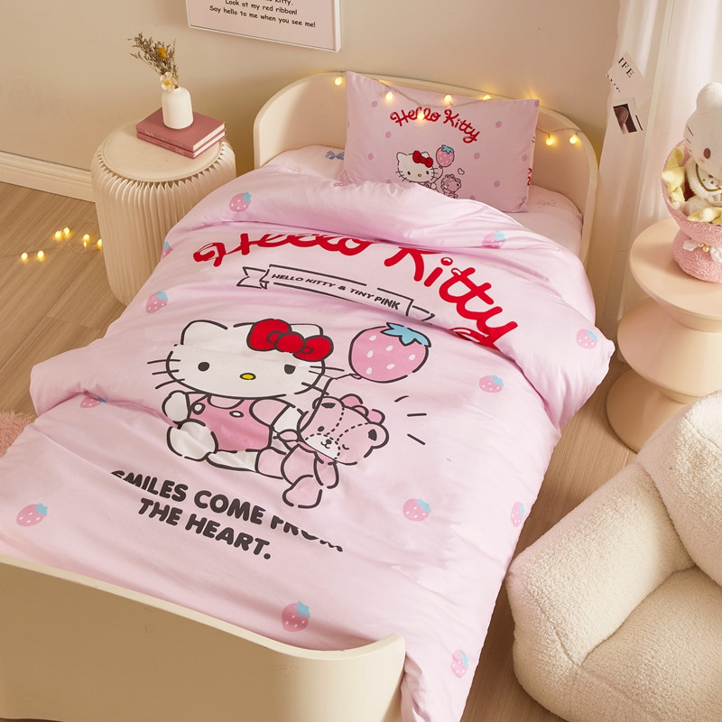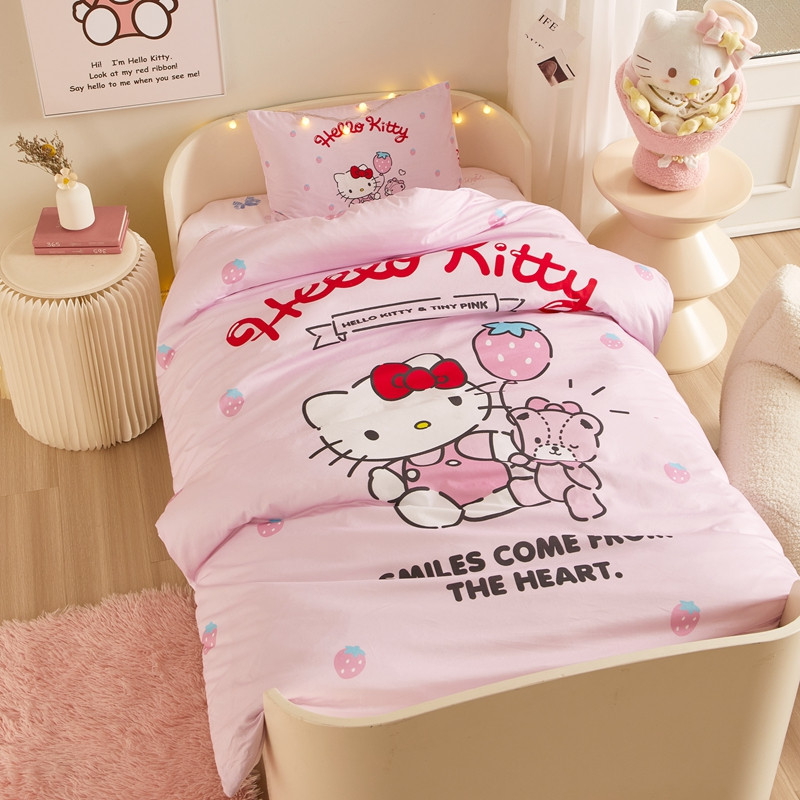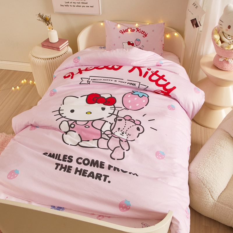 蘭菲 2023新款幼儿园全棉印染三丽鸥全棉大版卡通三件套 草莓派