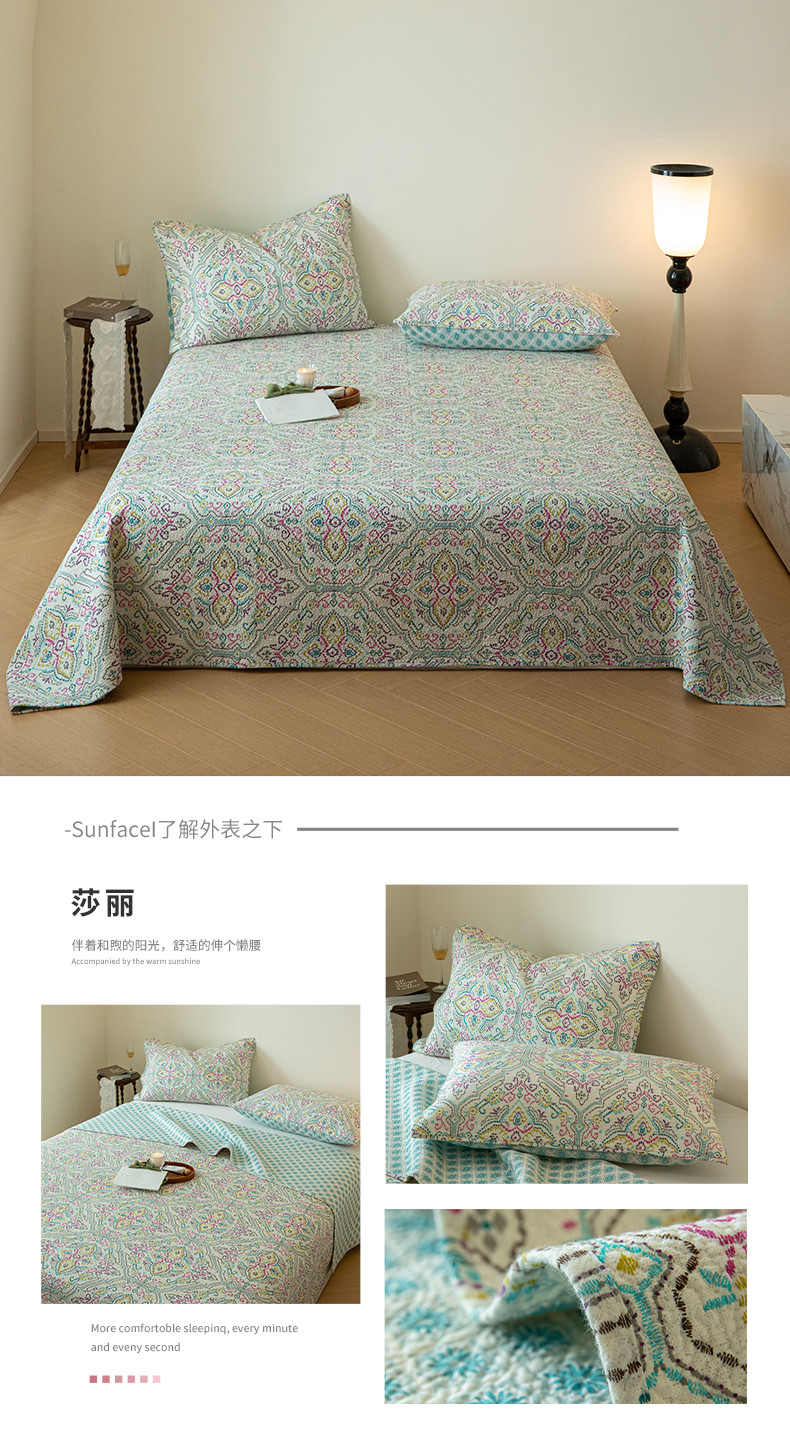 上喜 热卖双面全棉印花密绗床盖三件套 莎丽