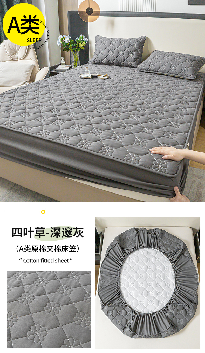 (总)恬澳家纺 2025新款简约亲肤夹棉床笠-四叶草,四叶草-本白,四叶草-豆绿,四叶草-粉玉,四叶草-湖蓝,四叶草-浅灰,四叶草-深灰