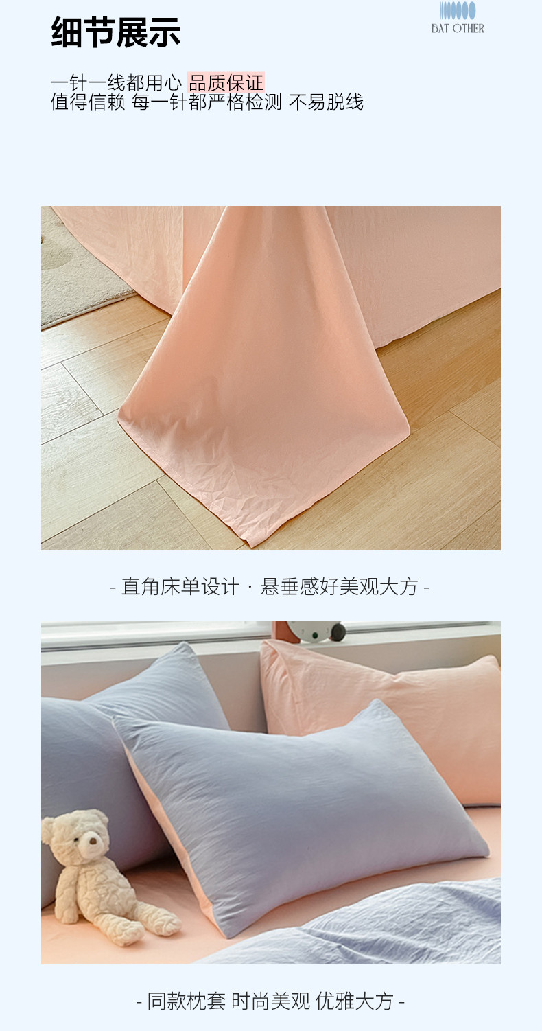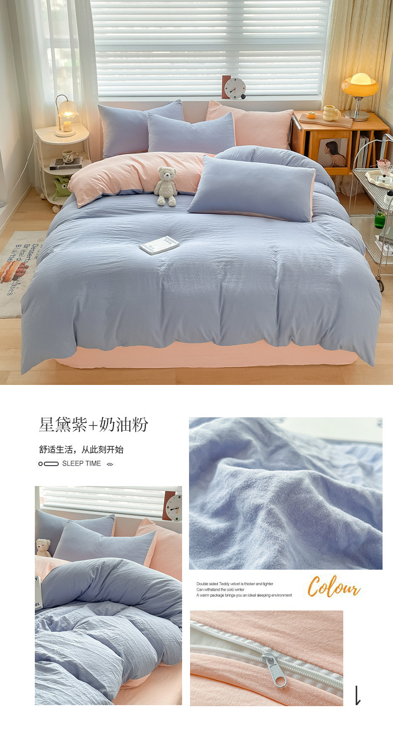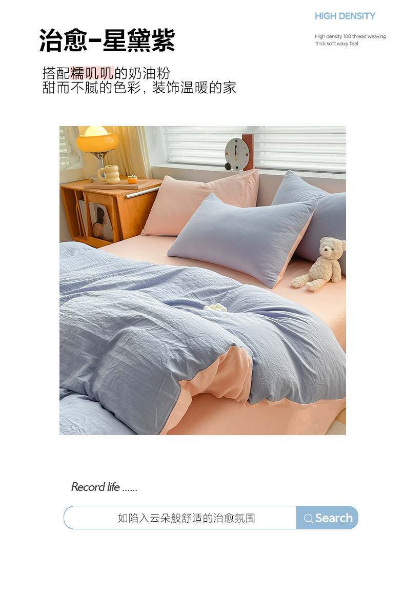 当前位置: 91家纺网 > 商品网购 > 床品套件 > 四件套 > 水洗棉四件套 > 古吉梦 2023新款纯色-双拼水洗棉四件套 纯色-星黛紫+奶油粉