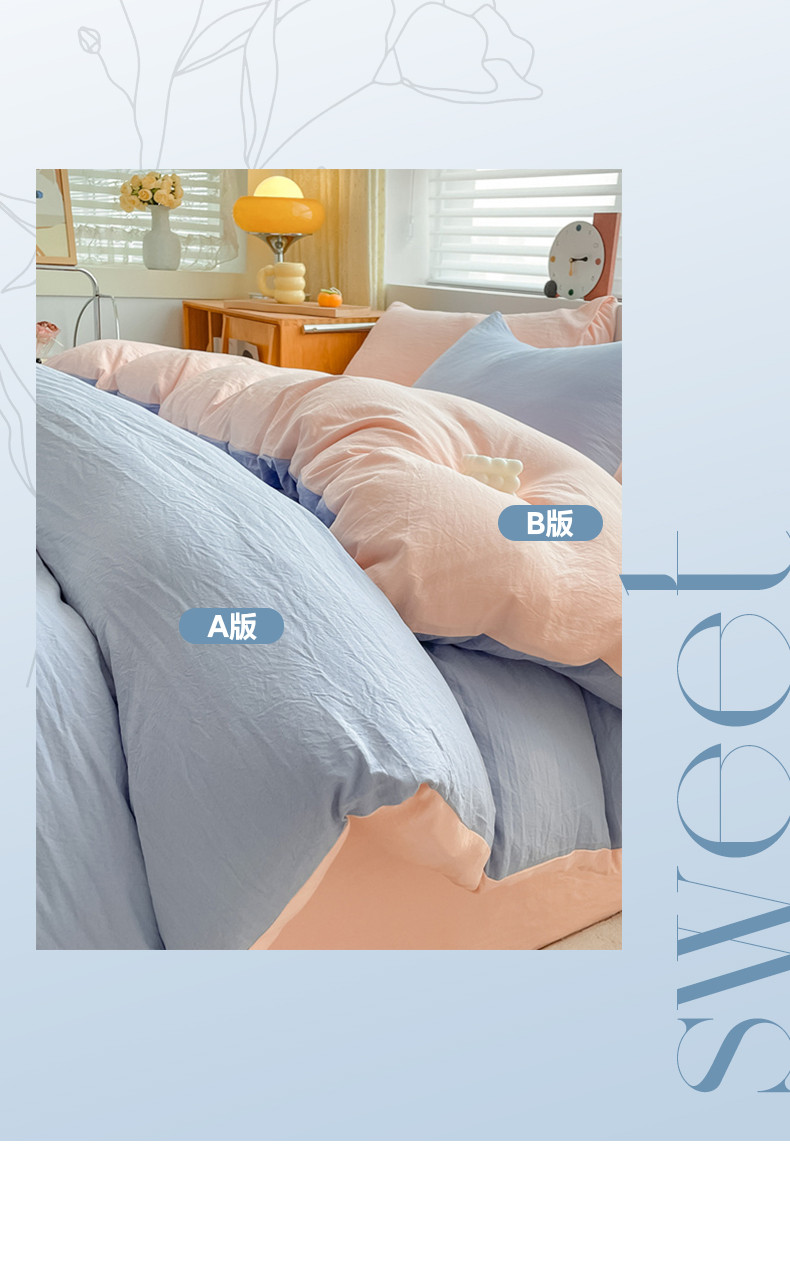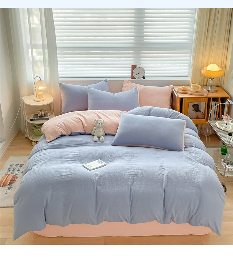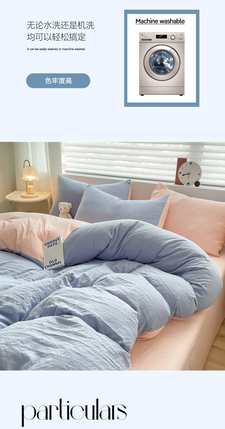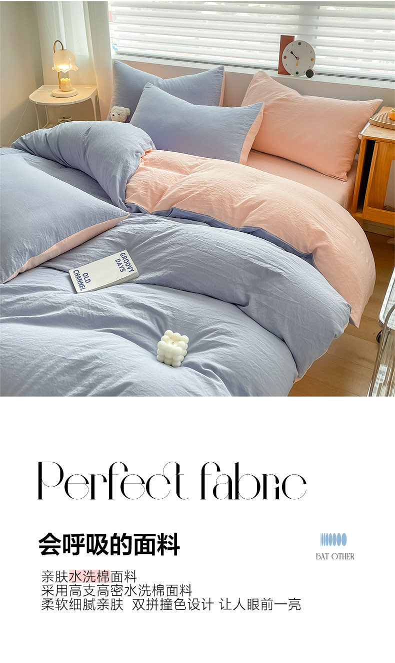 当前位置: 91家纺网 > 商品网购 > 床品套件 > 四件套 > 水洗棉四件套 > 古吉梦 2023新款纯色-双拼水洗棉四件套 纯色-星黛紫+奶油粉