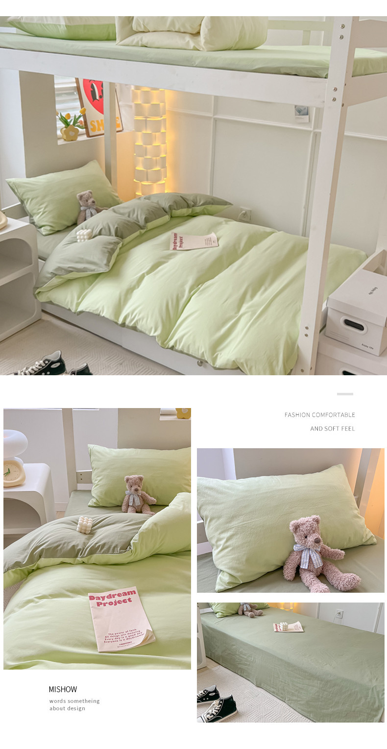 当前位置: 91家纺网 > 商品网购 > 床品套件 > 四件套 > 水洗棉四件套 > 盼季 2023新款无印风格子纯色水洗棉四件套 果绿深绿