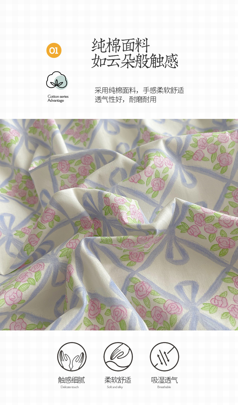 商品名称:桃子 2023新款ins韩系少女心碎花小清新卡通纯棉系列四件套 棉-蓝玲