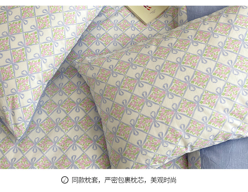 桃子 2023新款ins韩系少女心碎花小清新卡通纯棉系列四件套 棉-蓝玲