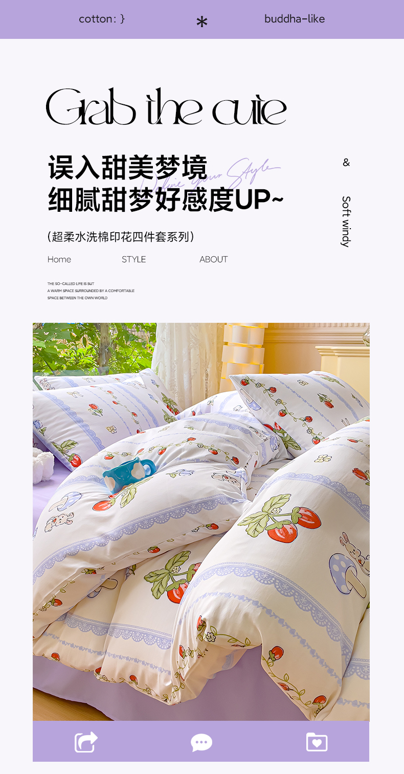 当前位置: 91家纺网 > 商品网购 > 床品套件 > 四件套 > 水洗棉四件套 > 超柔水洗棉双层纱四件套小碎花被套床笠床单学生宿舍三件套 百园