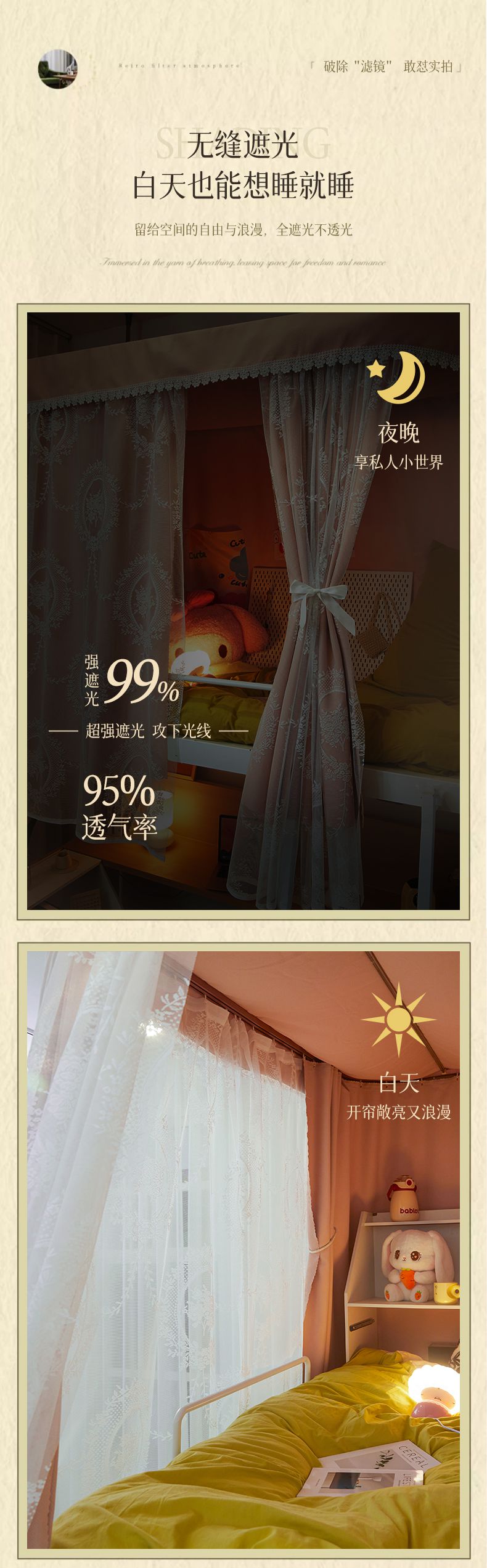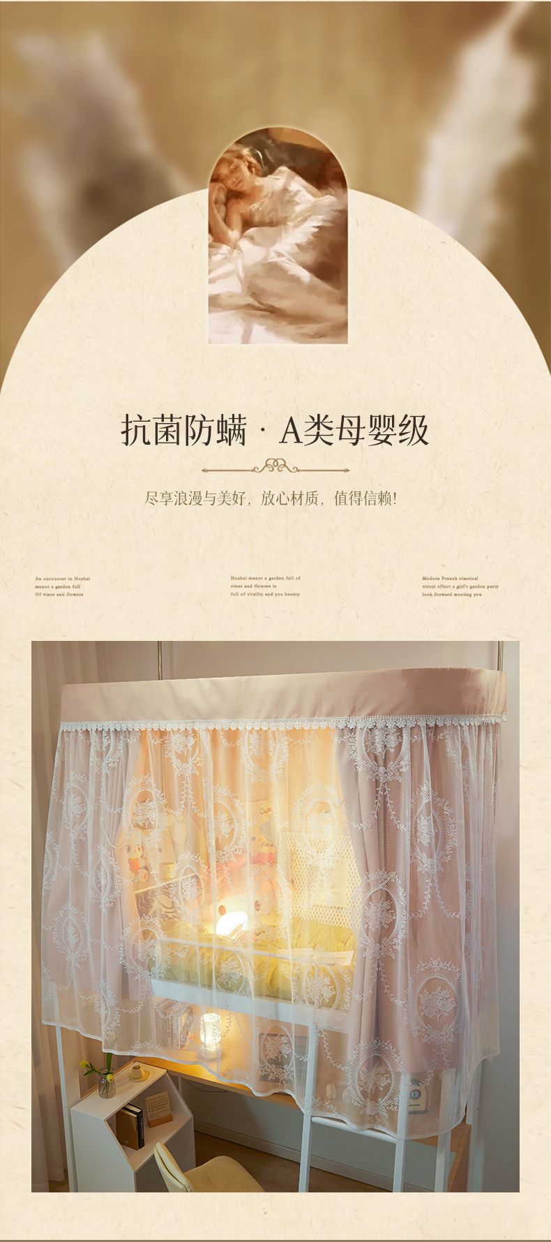 当前位置: 91家纺网 > 商品网购 > 床上用品 > 蚊帐 > 学生蚊帐 > 卓尔居 2025新款浪漫学生宿舍雪尼尔交织工艺蕾丝幔纱U型导轨蚊帐-镜中花 镜中花-奶黄