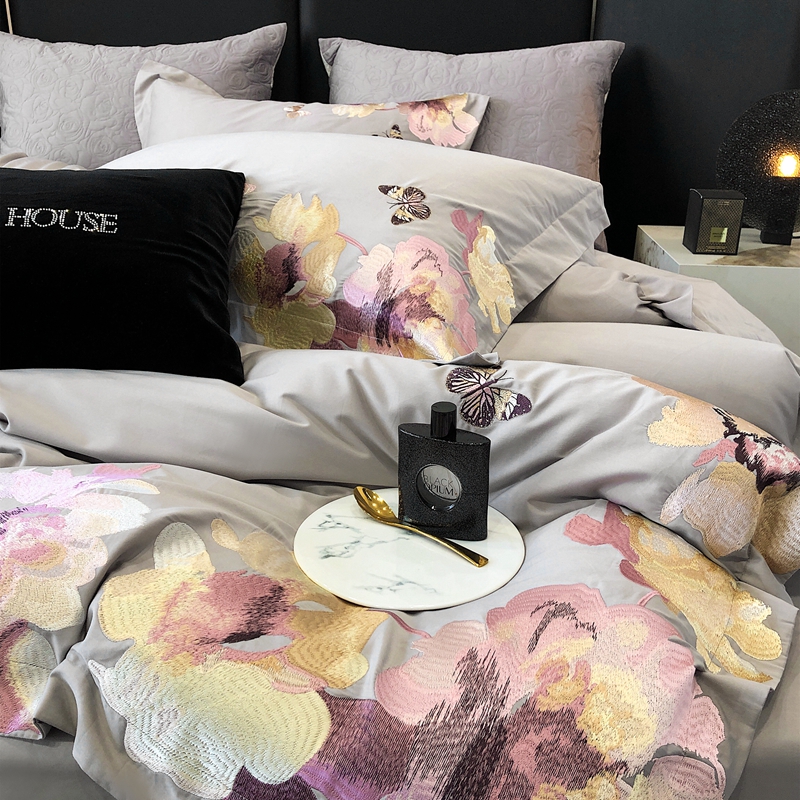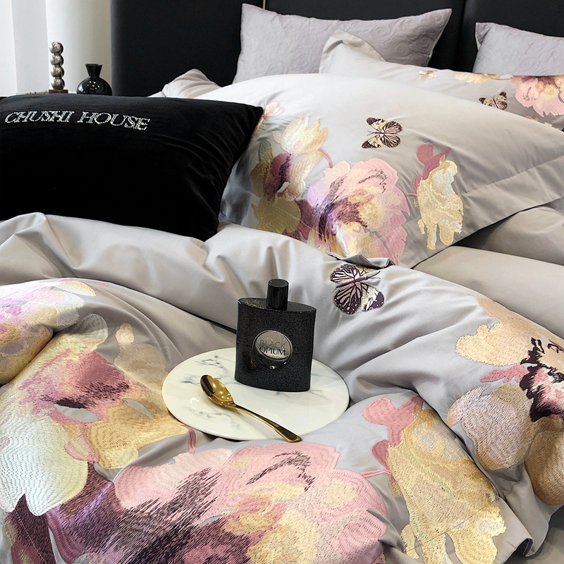 (总)初拾 2025新款230g牛奶绒“高级感“绣花四件套—曼岛邂逅,曼岛邂逅-奶油粉,曼岛邂逅-气质灰,曼岛邂逅-香槟