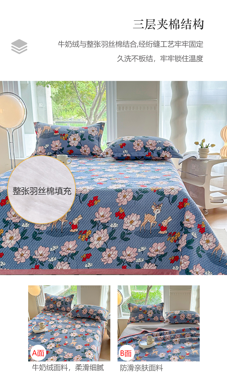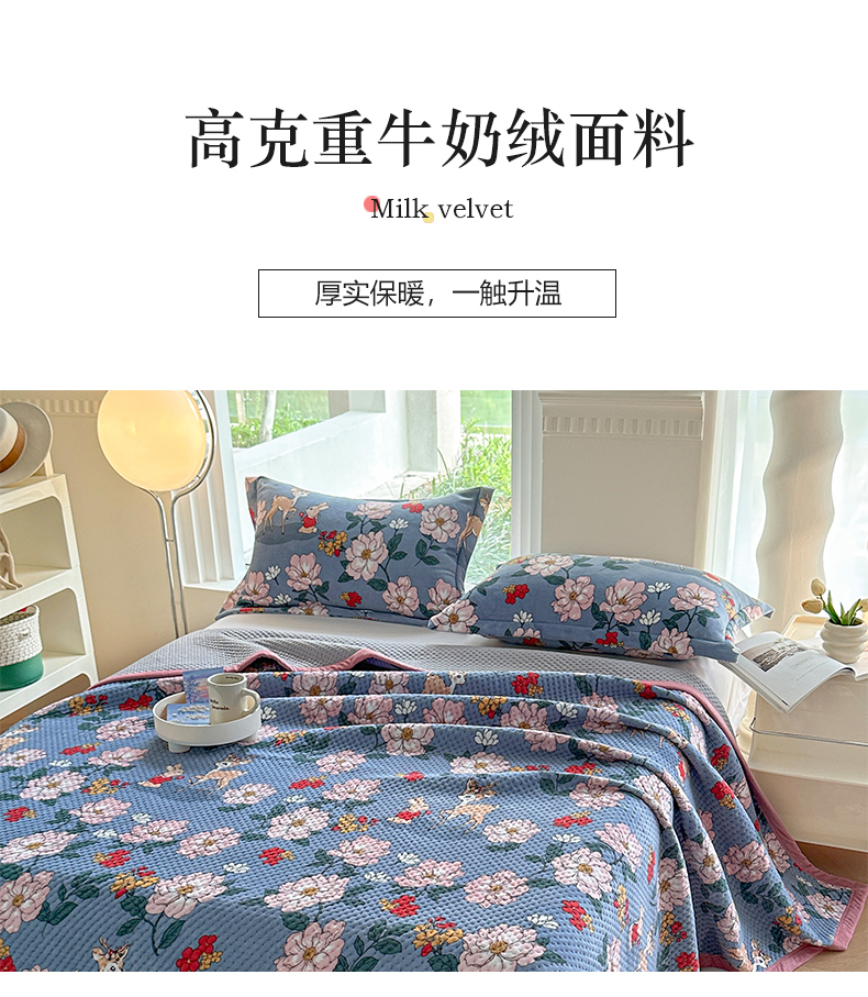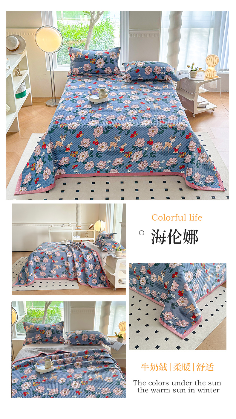 • 91家纺网 家纺一手货源 找家纺 胜权 2024款高克重牛奶绒夹棉单床盖单件保暖床盖三件套 海伦娜