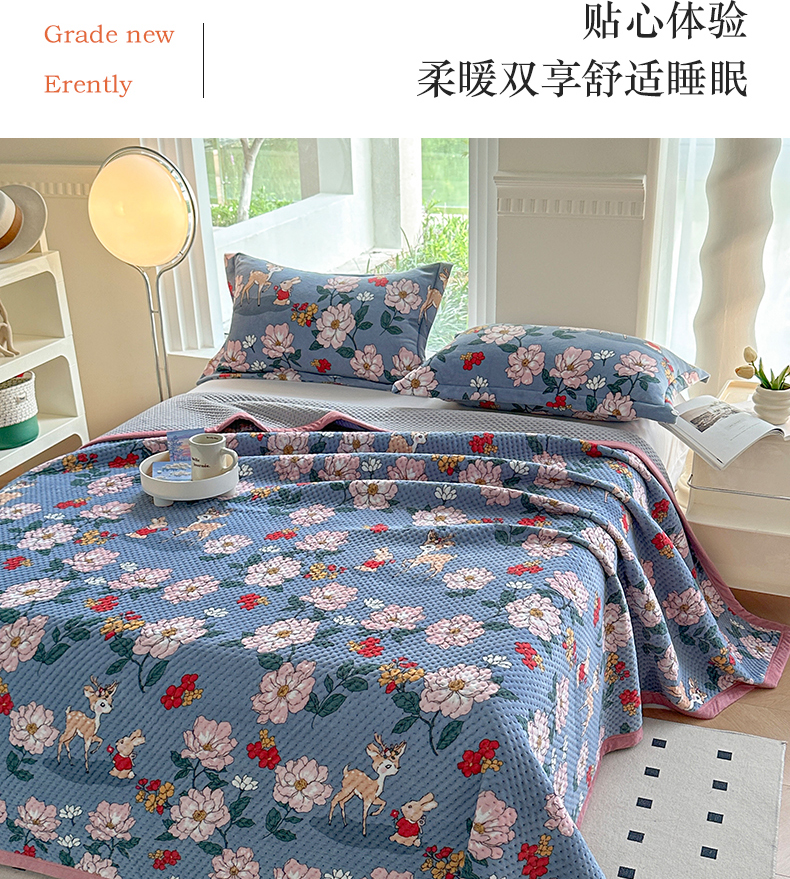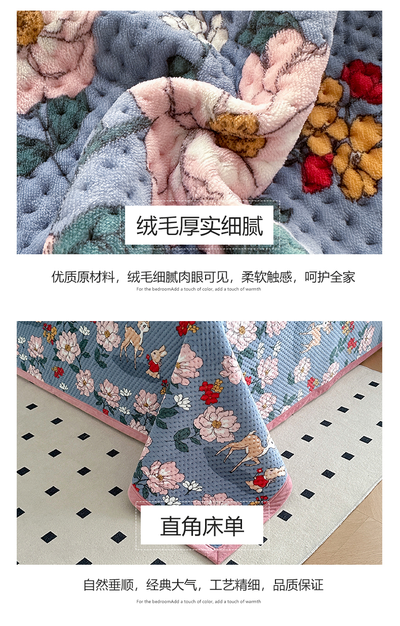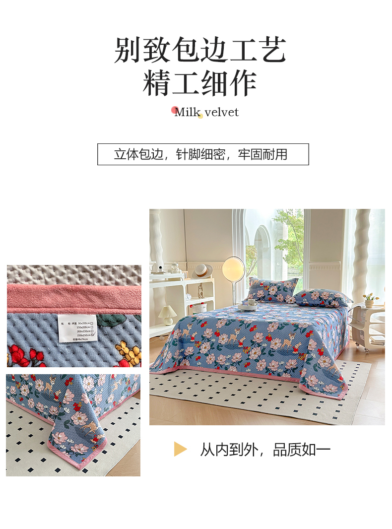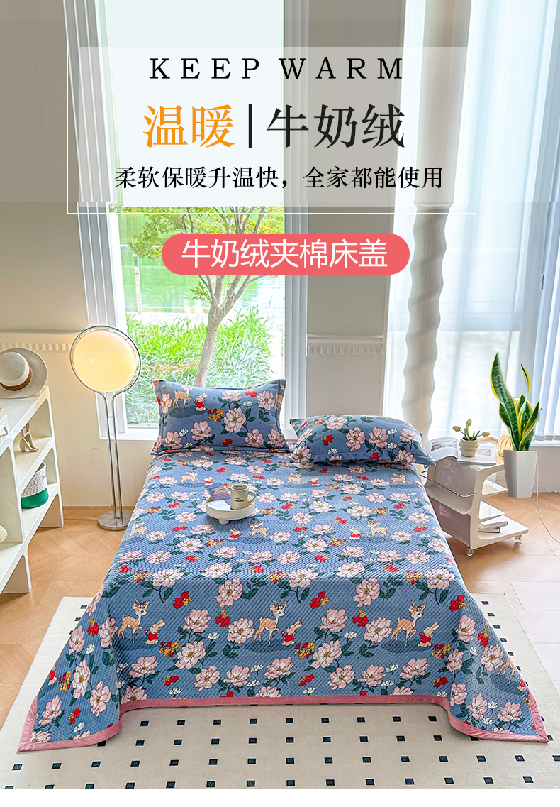 • 91家纺网 家纺一手货源 找家纺 胜权 2024款高克重牛奶绒夹棉单床盖单件保暖床盖三件套 海伦娜