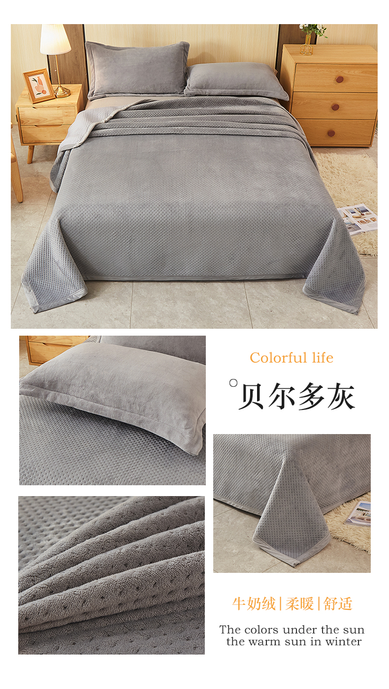 • 91家纺网 家纺一手货源 找家纺 胜权 2024款高克重牛奶绒夹棉单床盖单件保暖床盖三件套 贝儿多灰