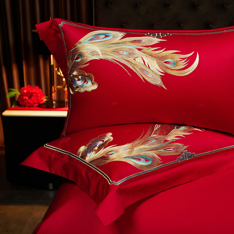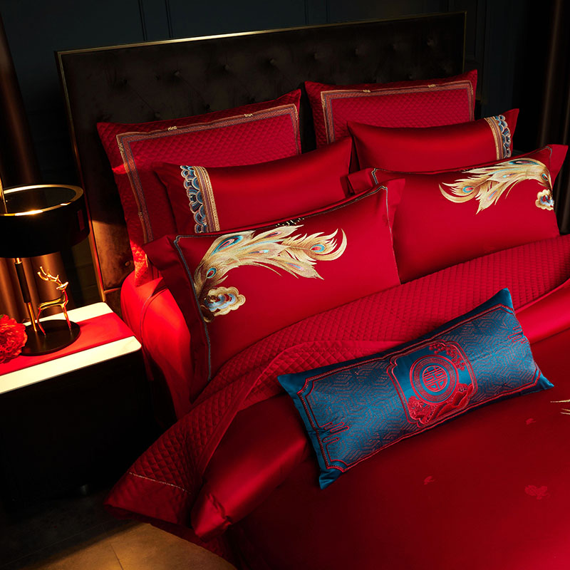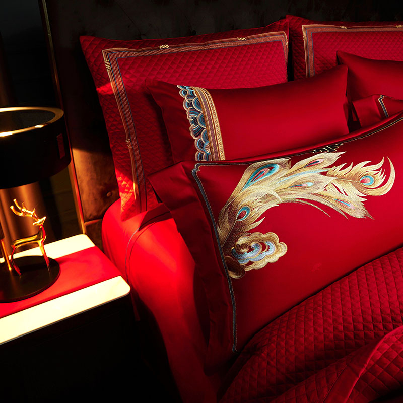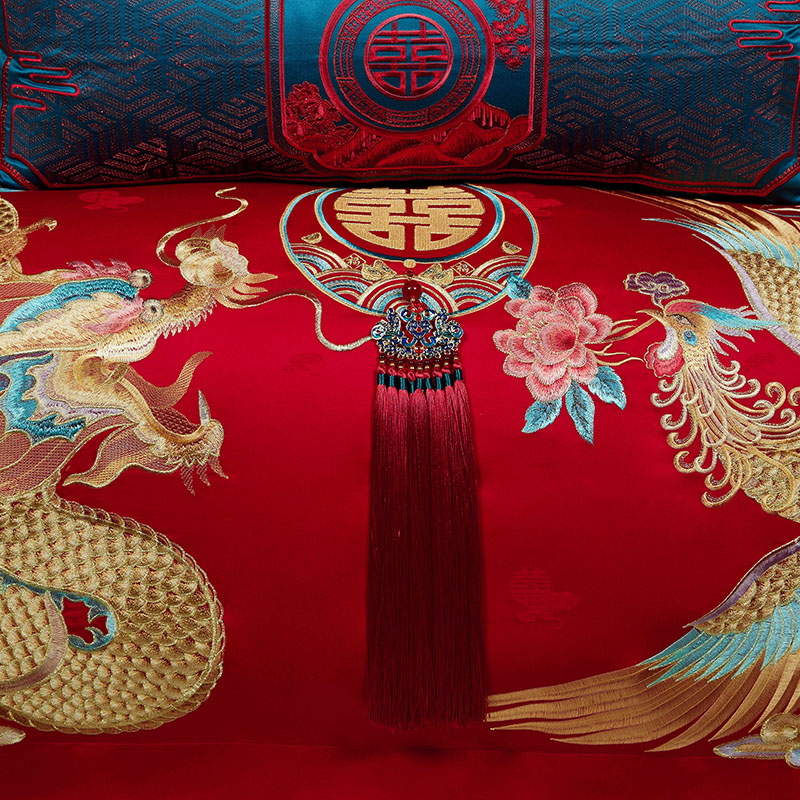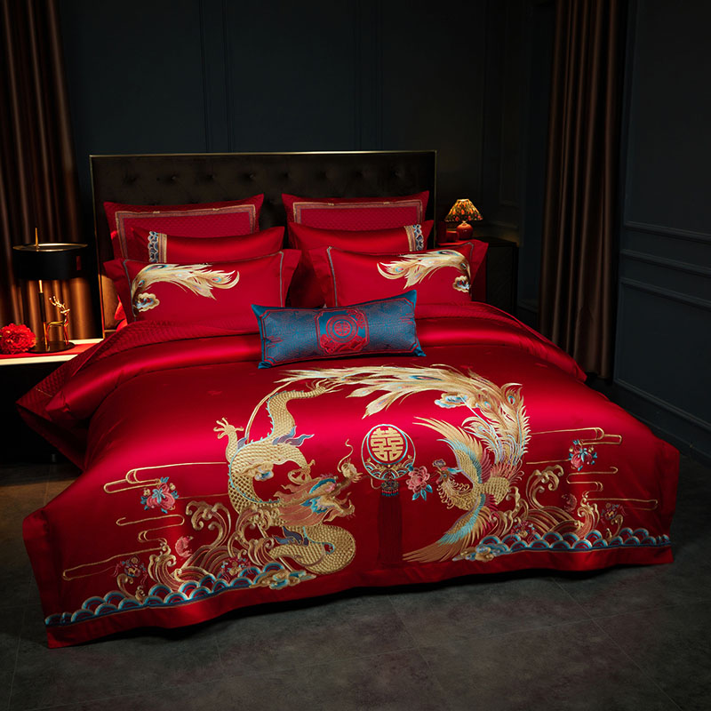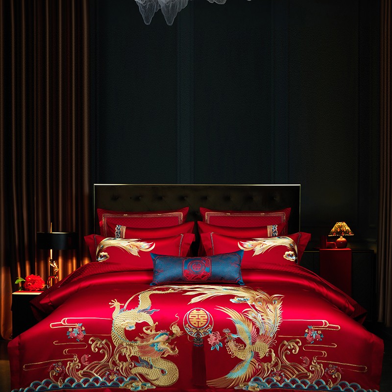 当前位置: 91家纺网 > 商品网购 > 床品套件 > 四件套 > 长绒棉四件套 > 缔缦 2023新款100s全棉长绒棉刺绣四件套婚庆 龙凤成双
