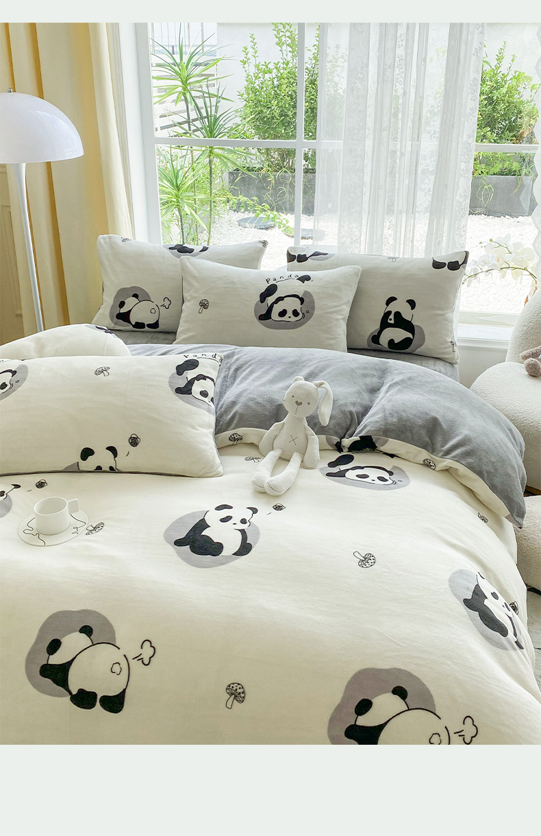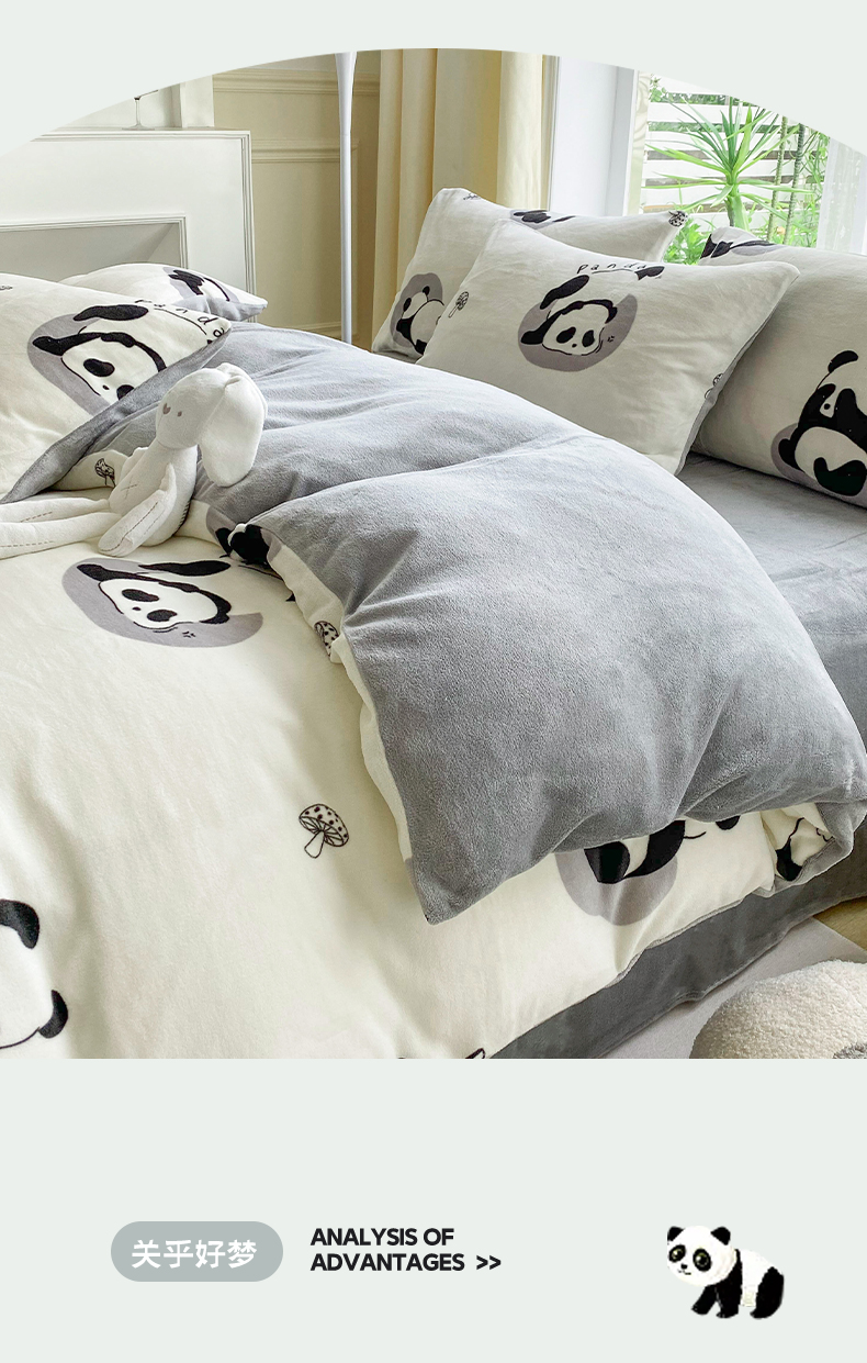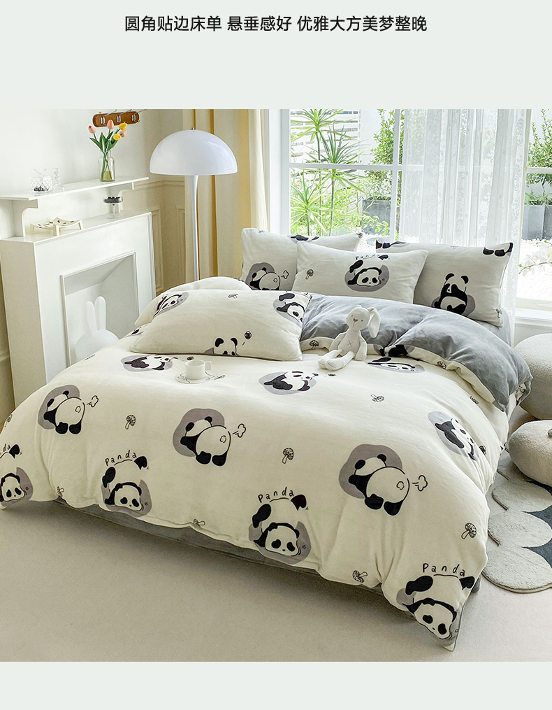 商品名称:帅露 2023款200g高克重亲肤吊边款印花牛奶绒四件套 安逸胖哒