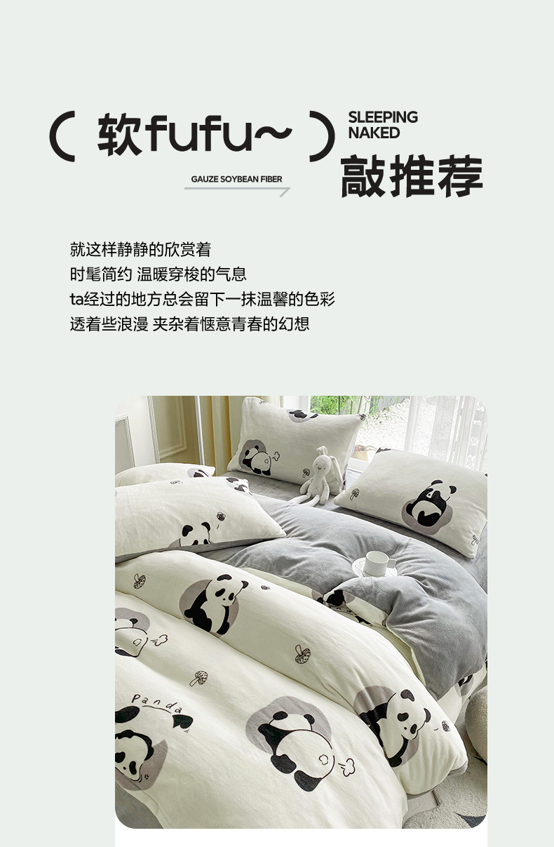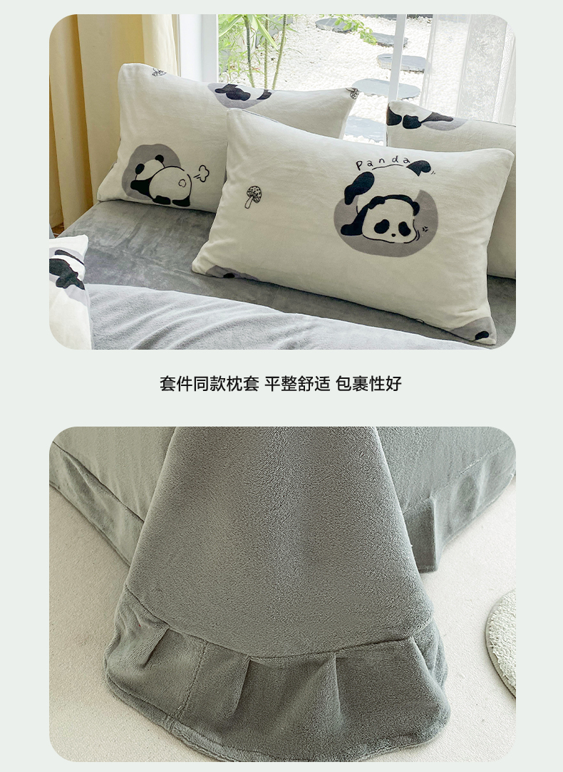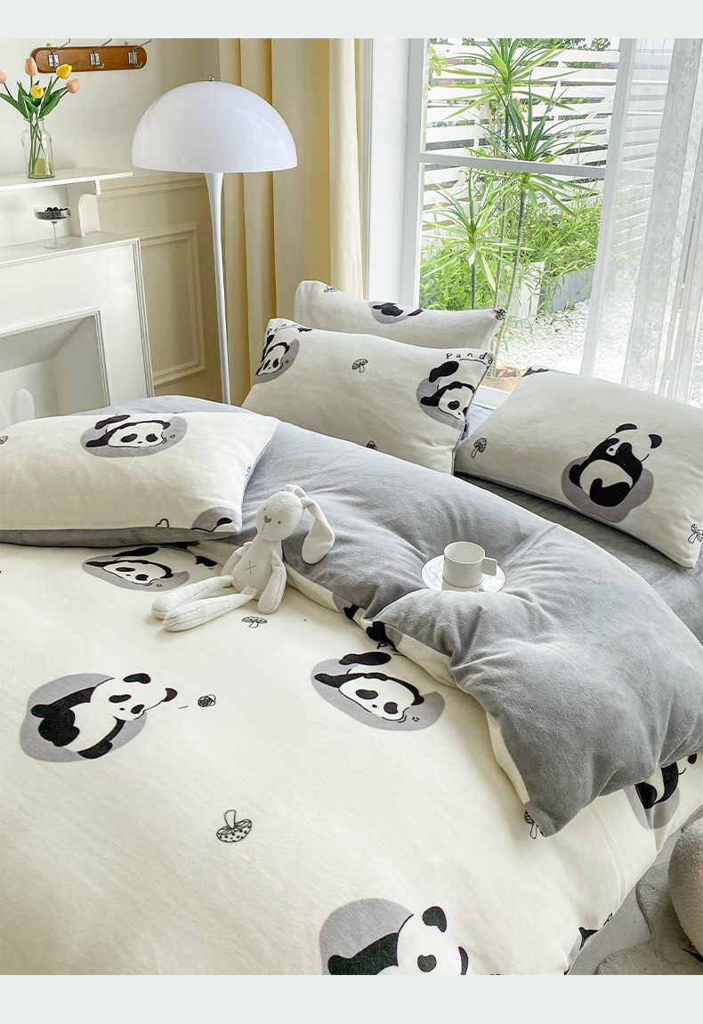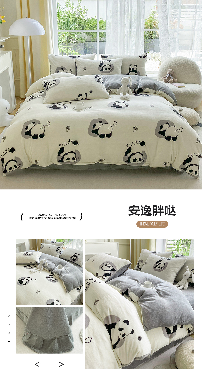 商品名称:帅露 2023款200g高克重亲肤吊边款印花牛奶绒四件套 安逸胖哒