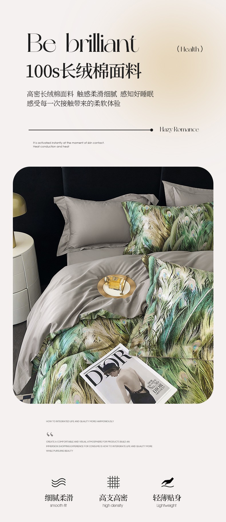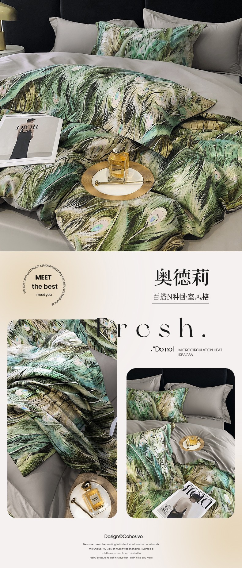 商品名称:红馆 2003新款轻奢高支棉臻品100支数码印花四件套--简约款 奥德莉