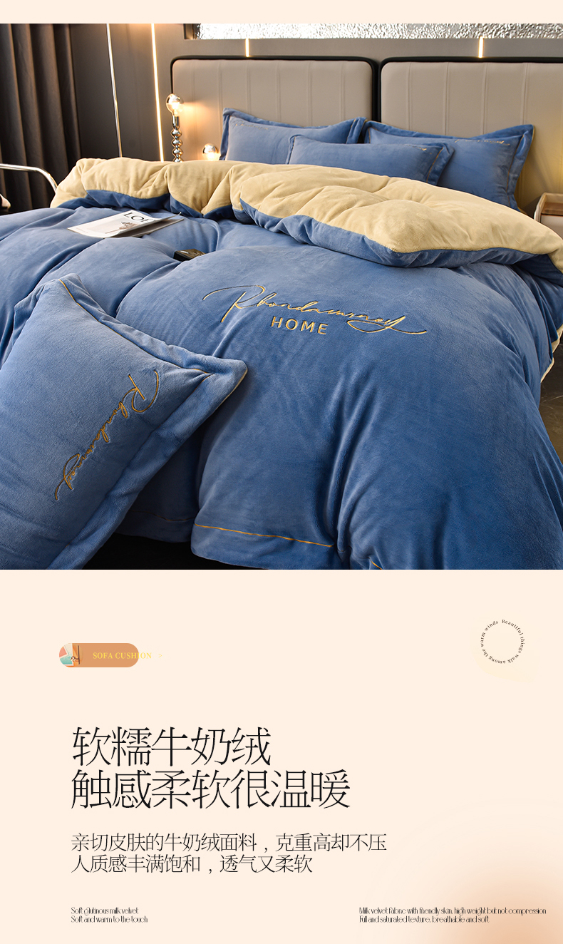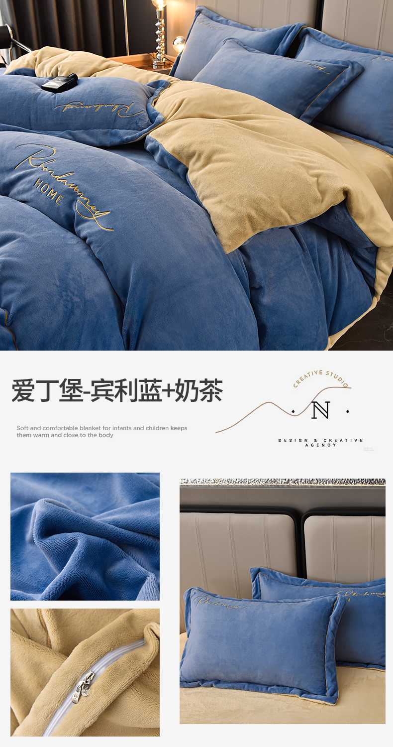 当前位置: 91家纺网 > 商品网购 > 床品套件 > 四件套 > 牛奶绒四件套 > 笙意家纺 2025新款牛奶绒刺绣四件套-爱丁堡系列 爱丁堡-宾利蓝+奶茶