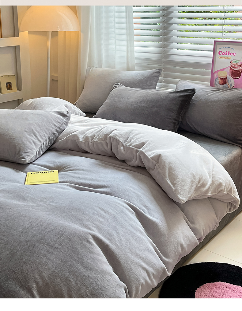 雅居纺家纺 2023渐变系列牛奶绒四件套 渐变灰