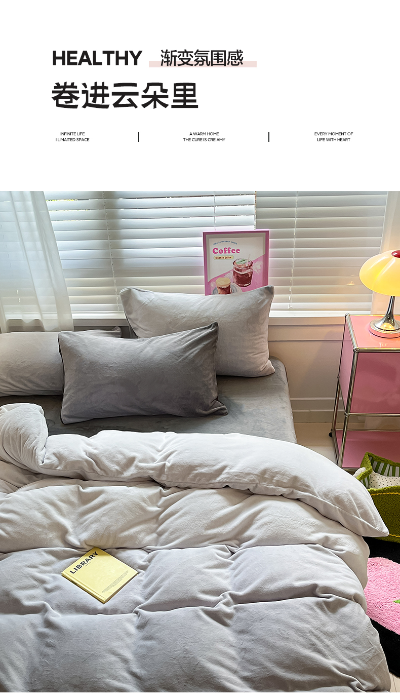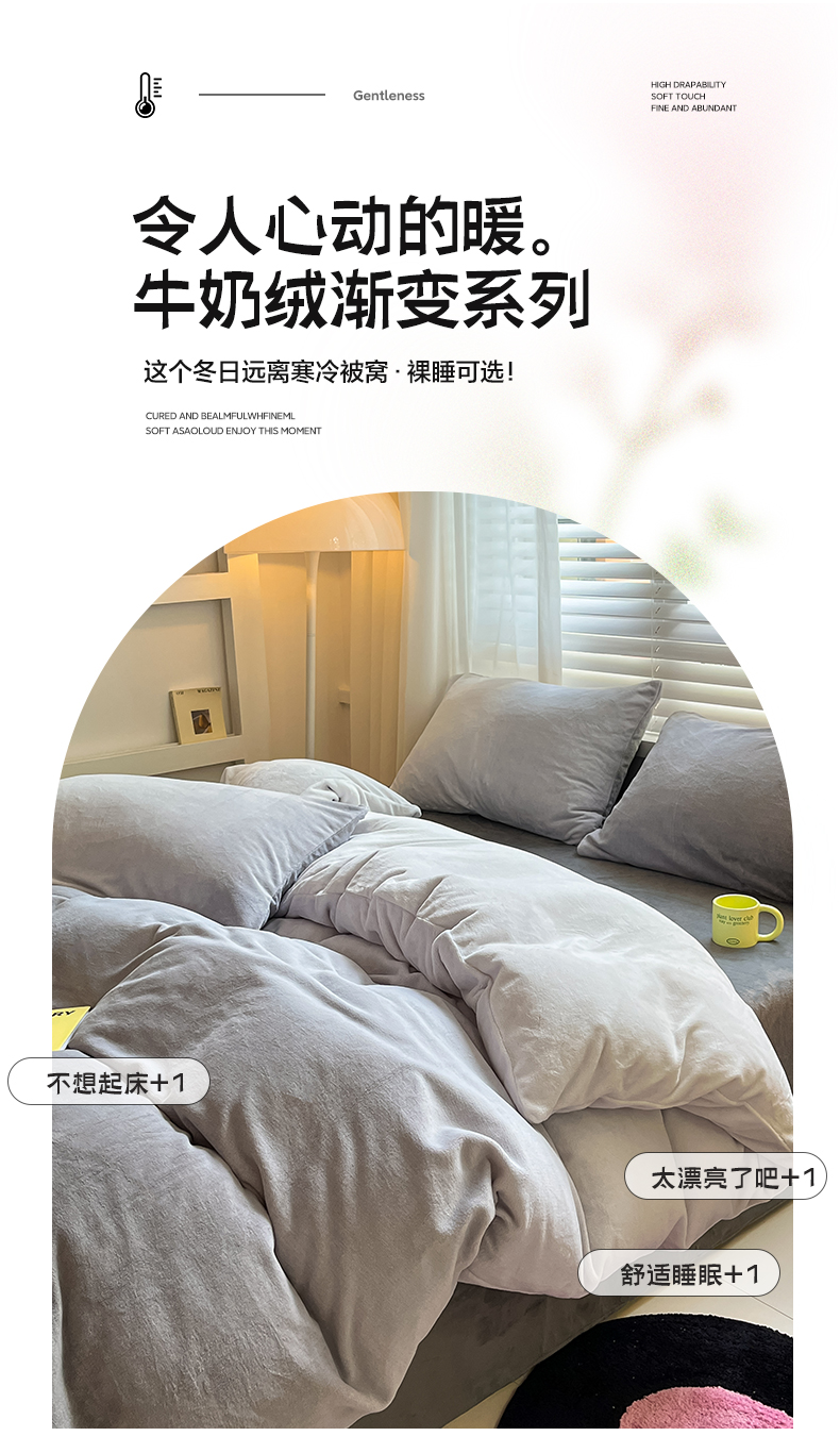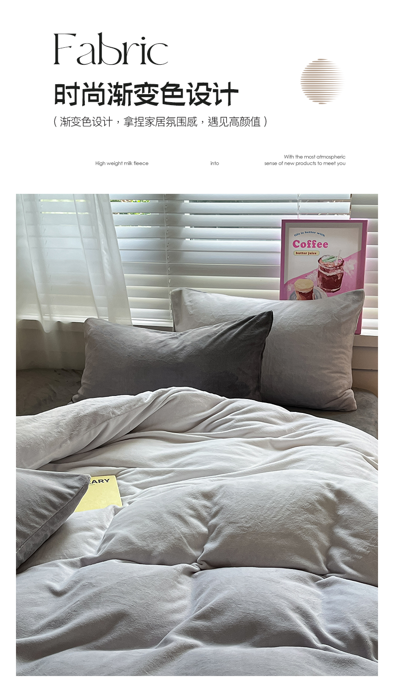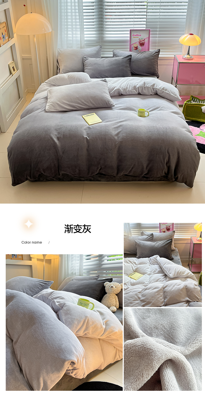 商品名称:雅居纺家纺 2023渐变系列牛奶绒四件套 渐变灰