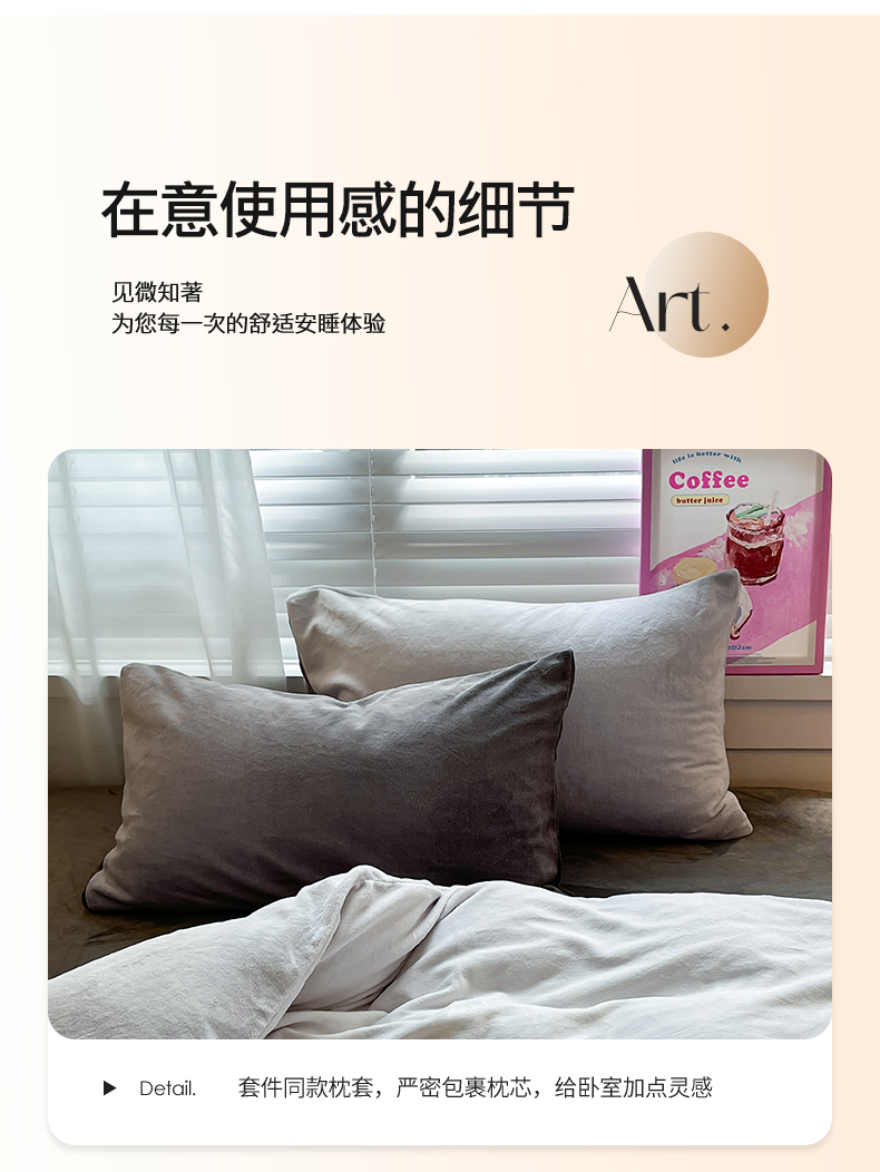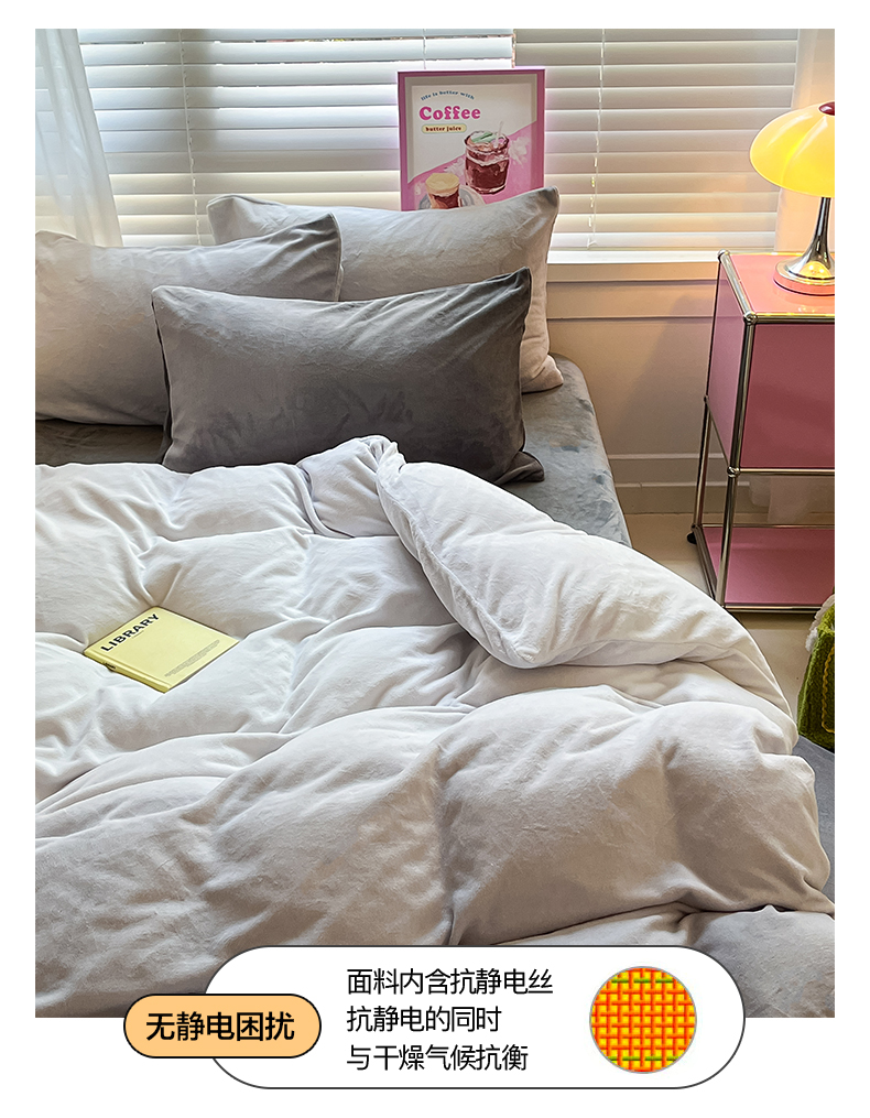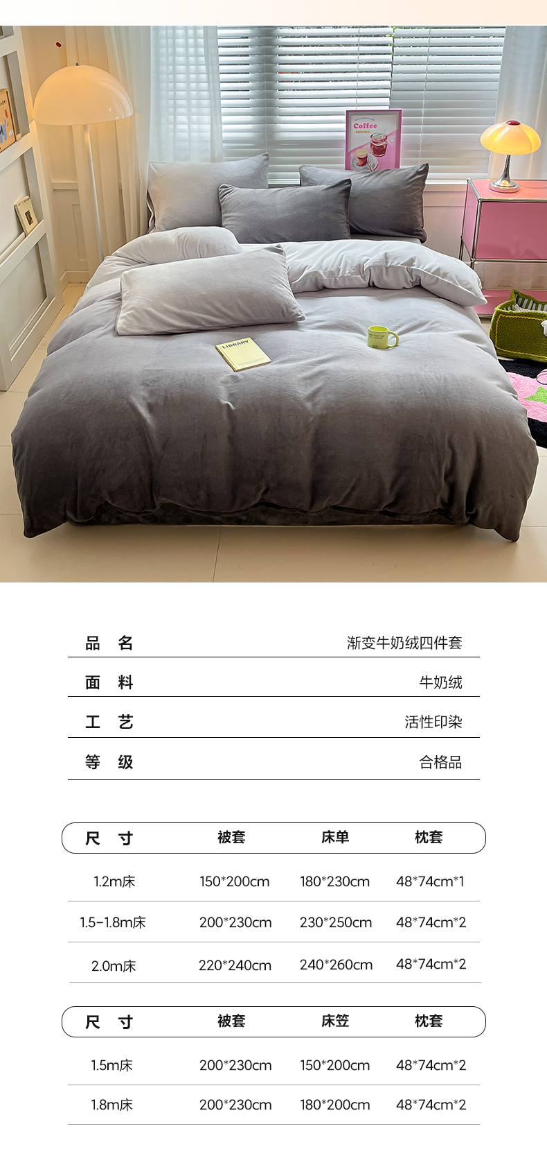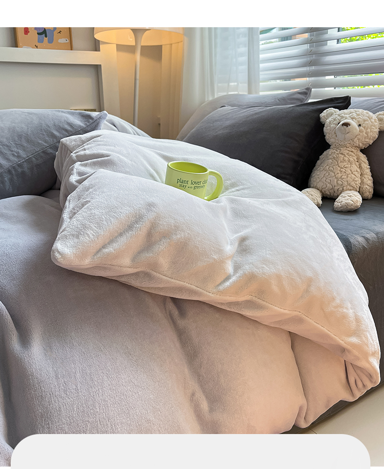 商品名称:雅居纺家纺 2023渐变系列牛奶绒四件套 渐变灰
