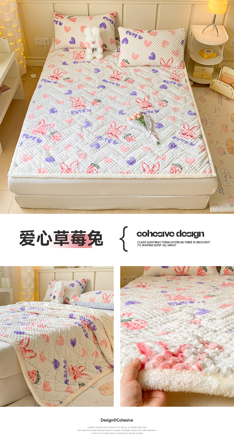 商品名称:澳梵家居 2023新款豆豆绒夹棉床护垫 爱心草莓兔