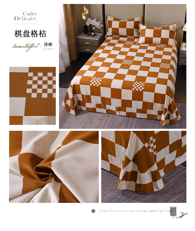 晶缦 2023新款格林系列全棉活性磨毛多规格床单 棋盘格桔