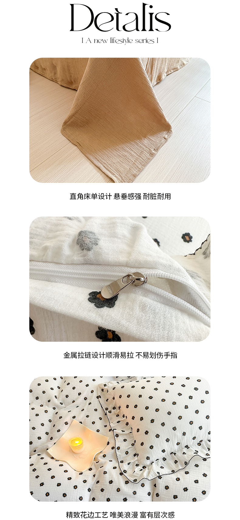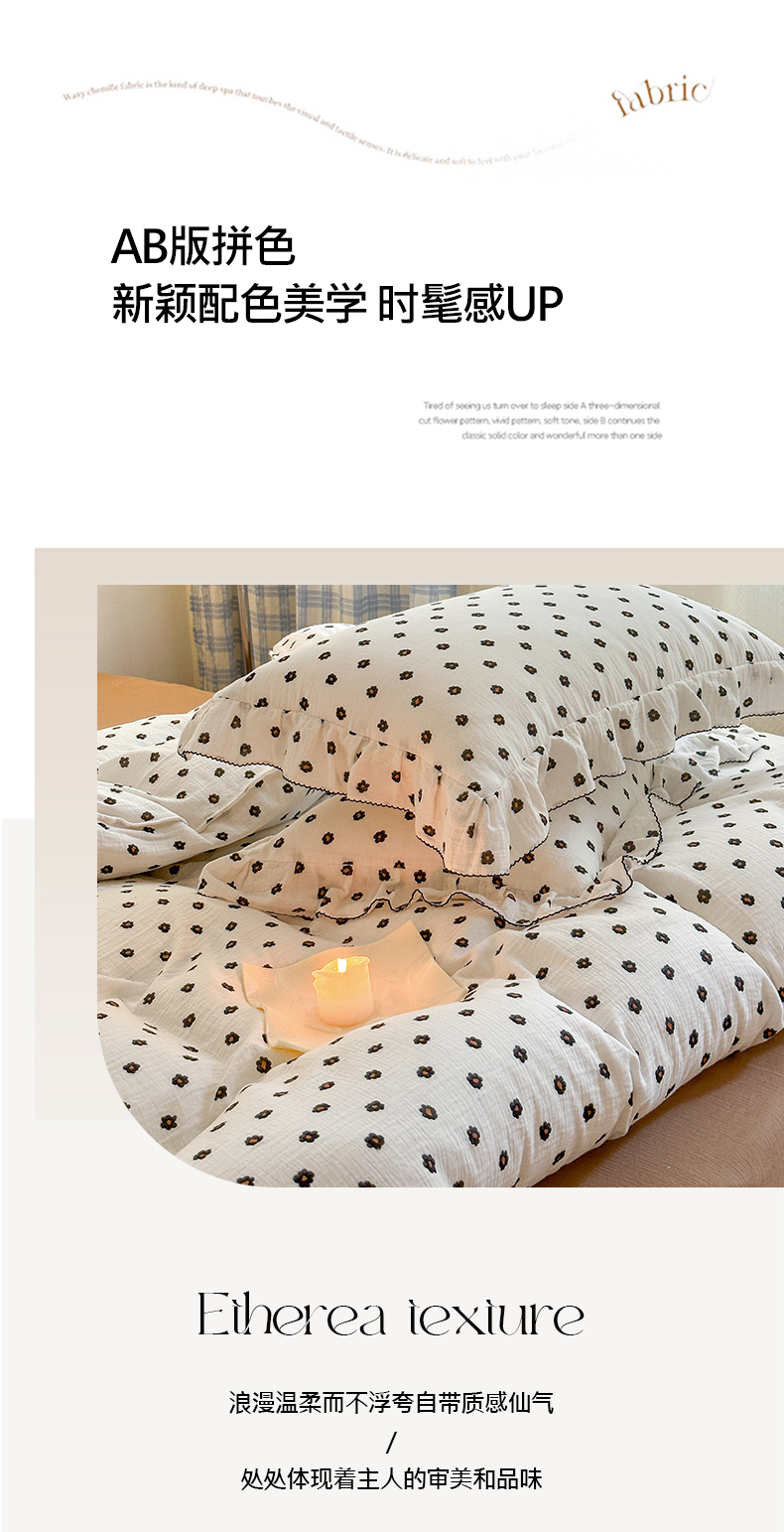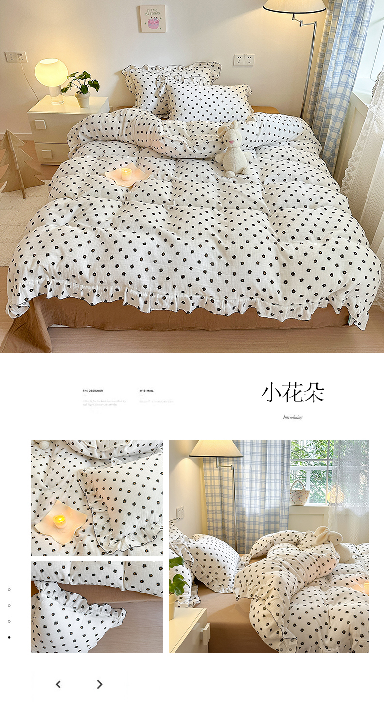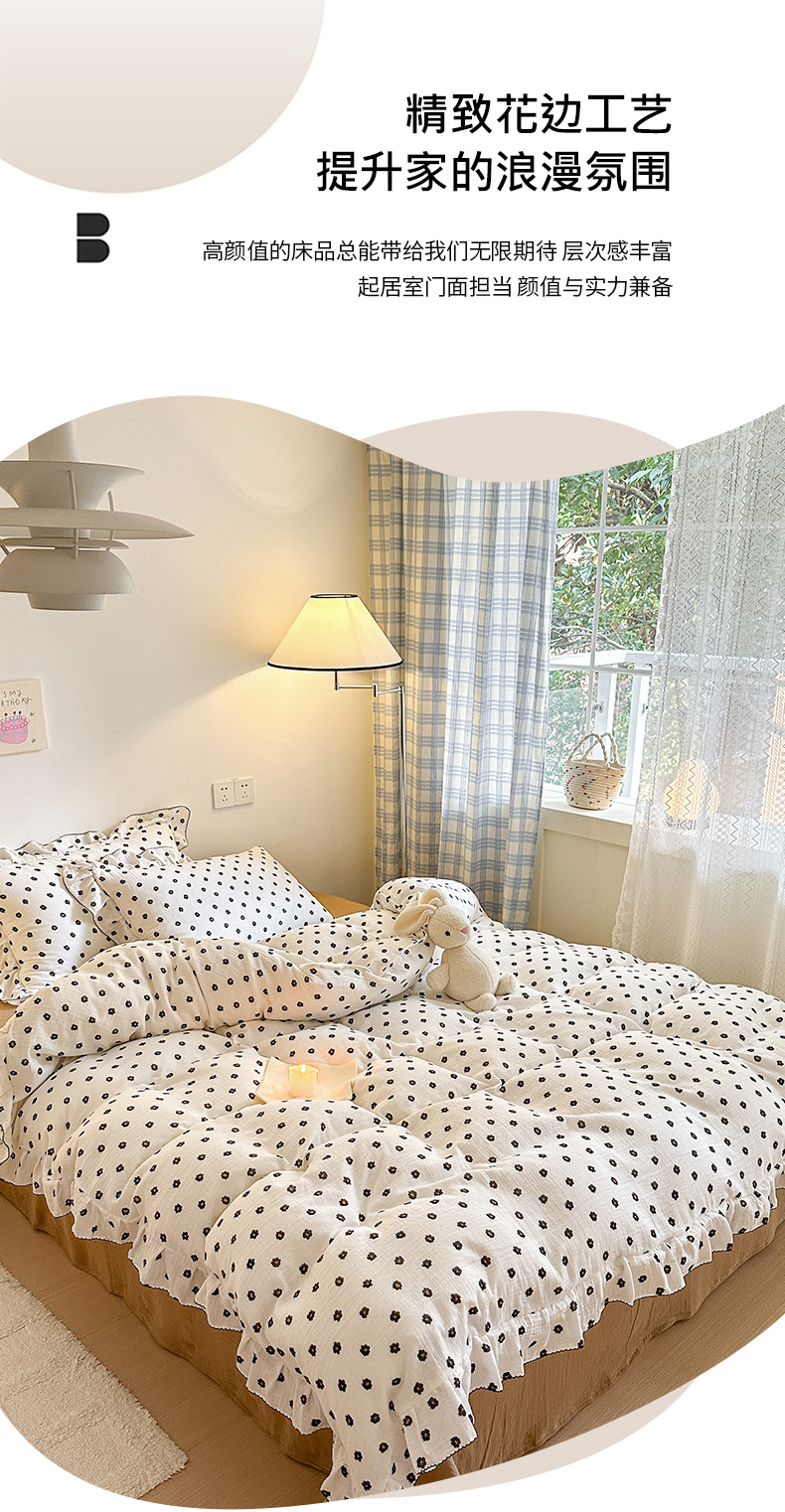 商品名称:淑女公社 2024新款A类水洗棉皱皱纱花边款四件套 小花朵