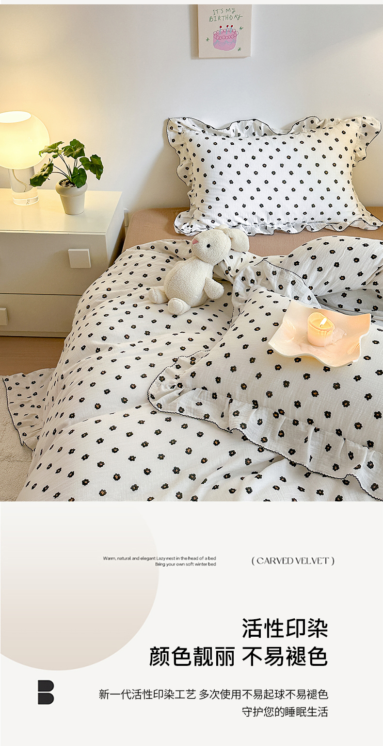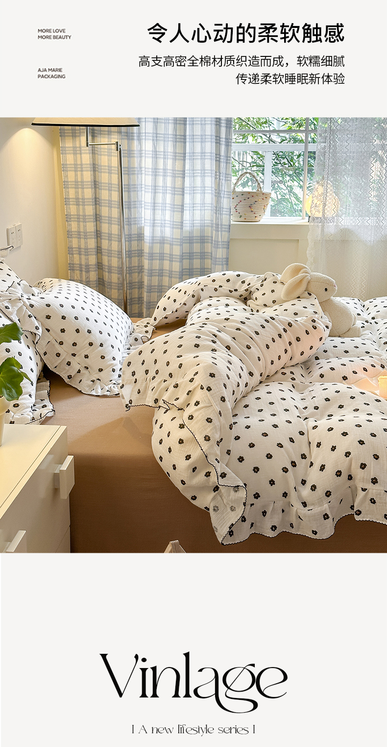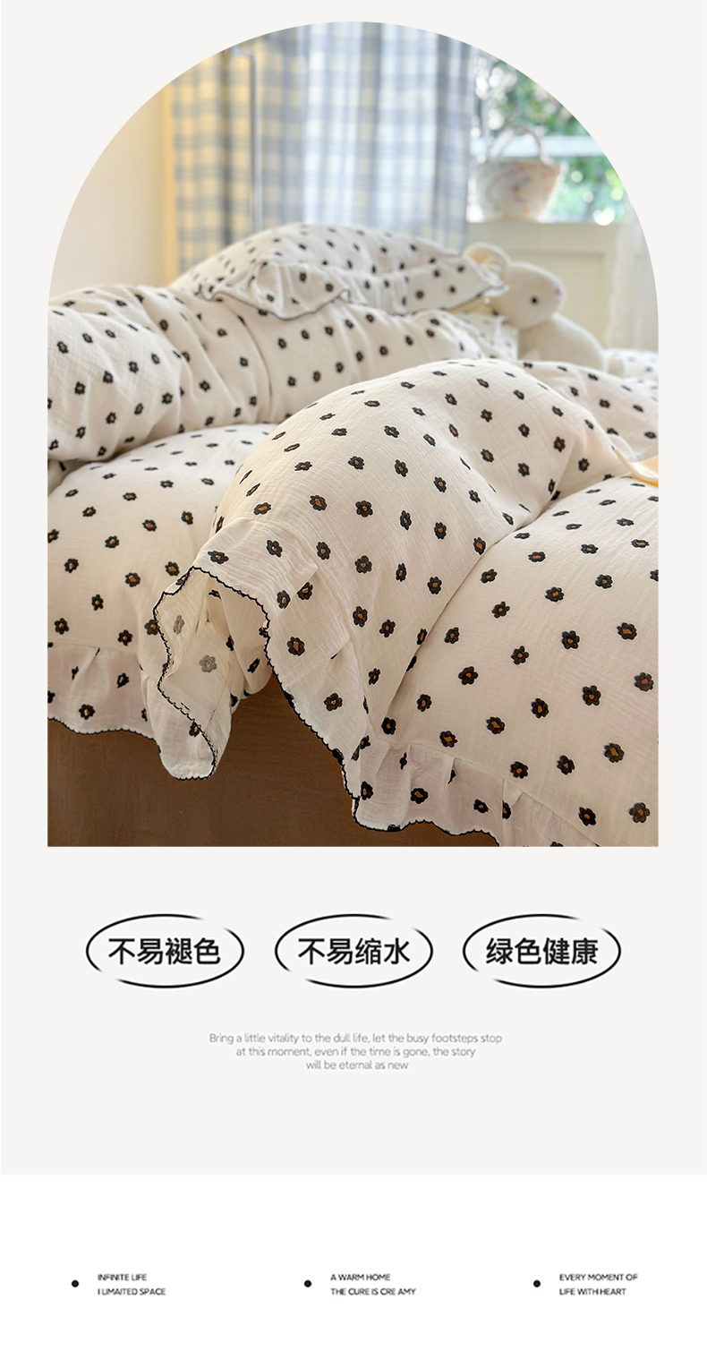 淑女公社 2024新款A类水洗棉皱皱纱花边款四件套 小花朵