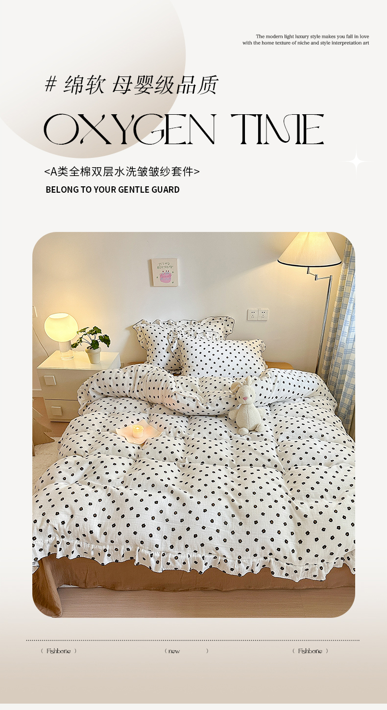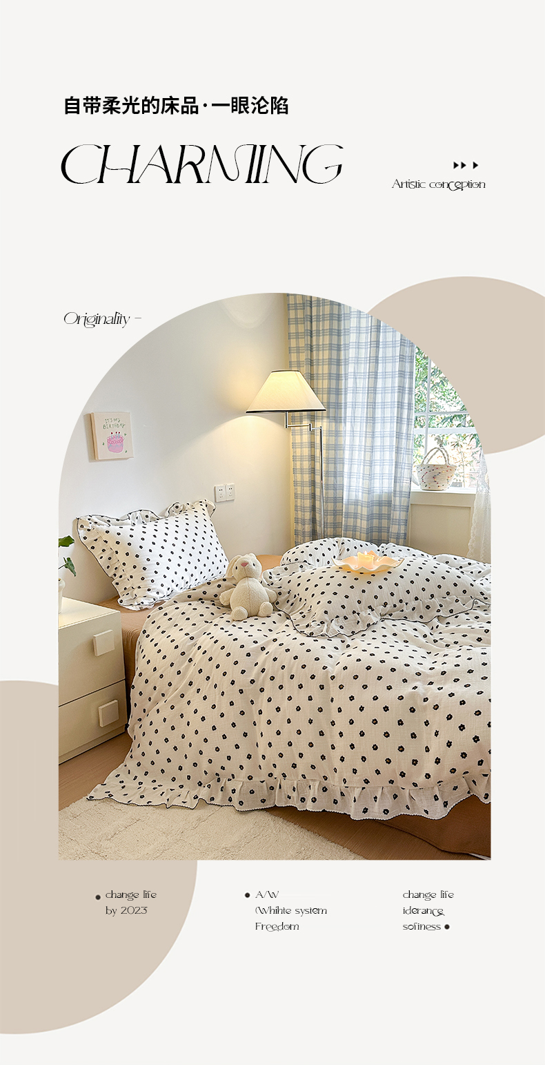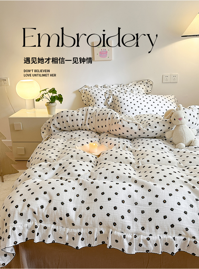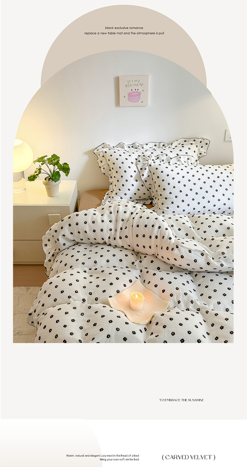 淑女公社 2024新款A类水洗棉皱皱纱花边款四件套 小花朵