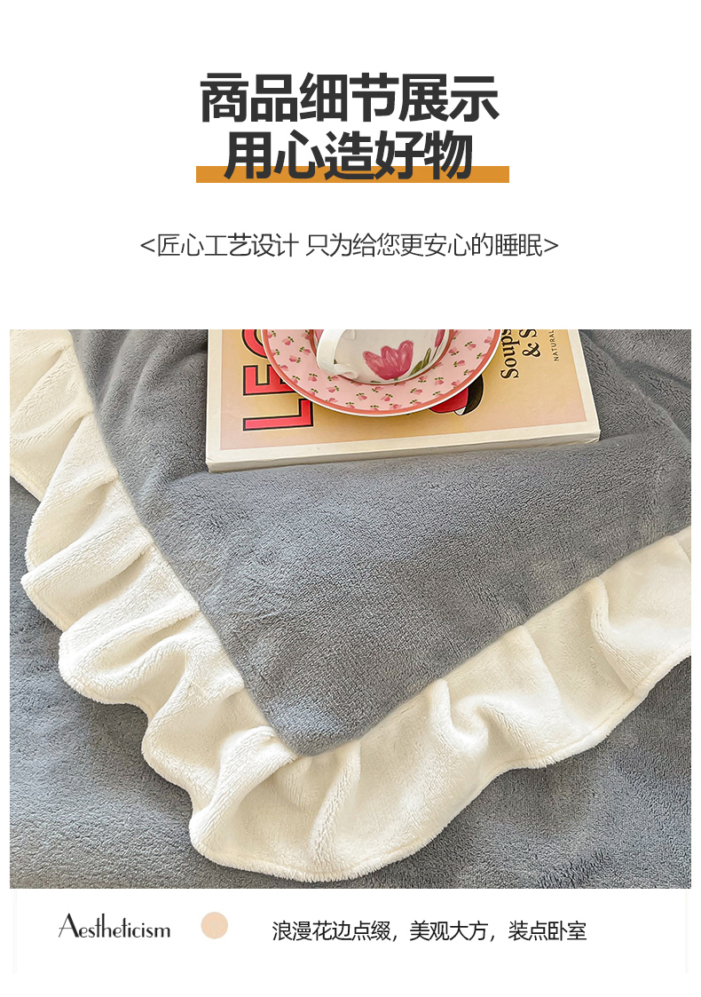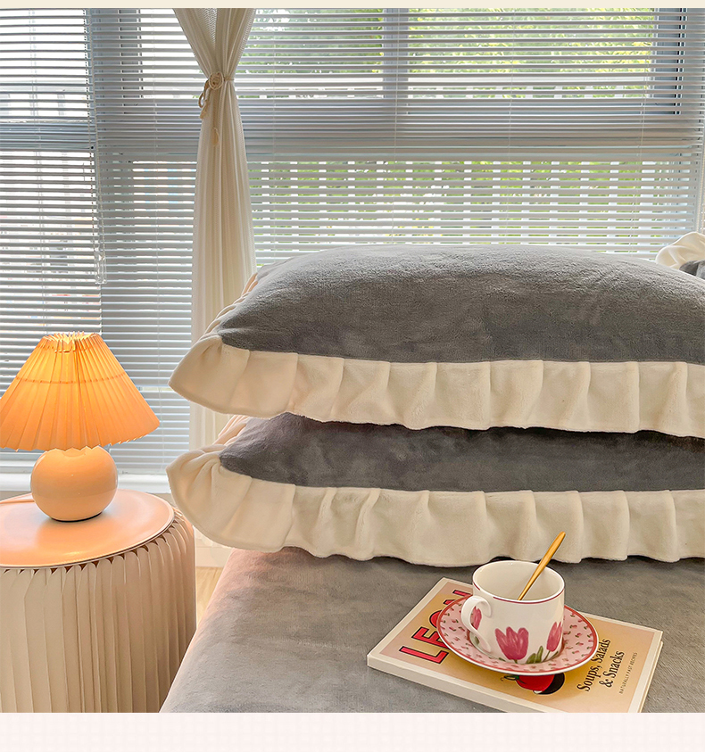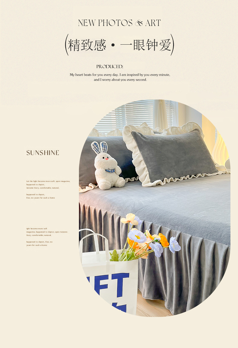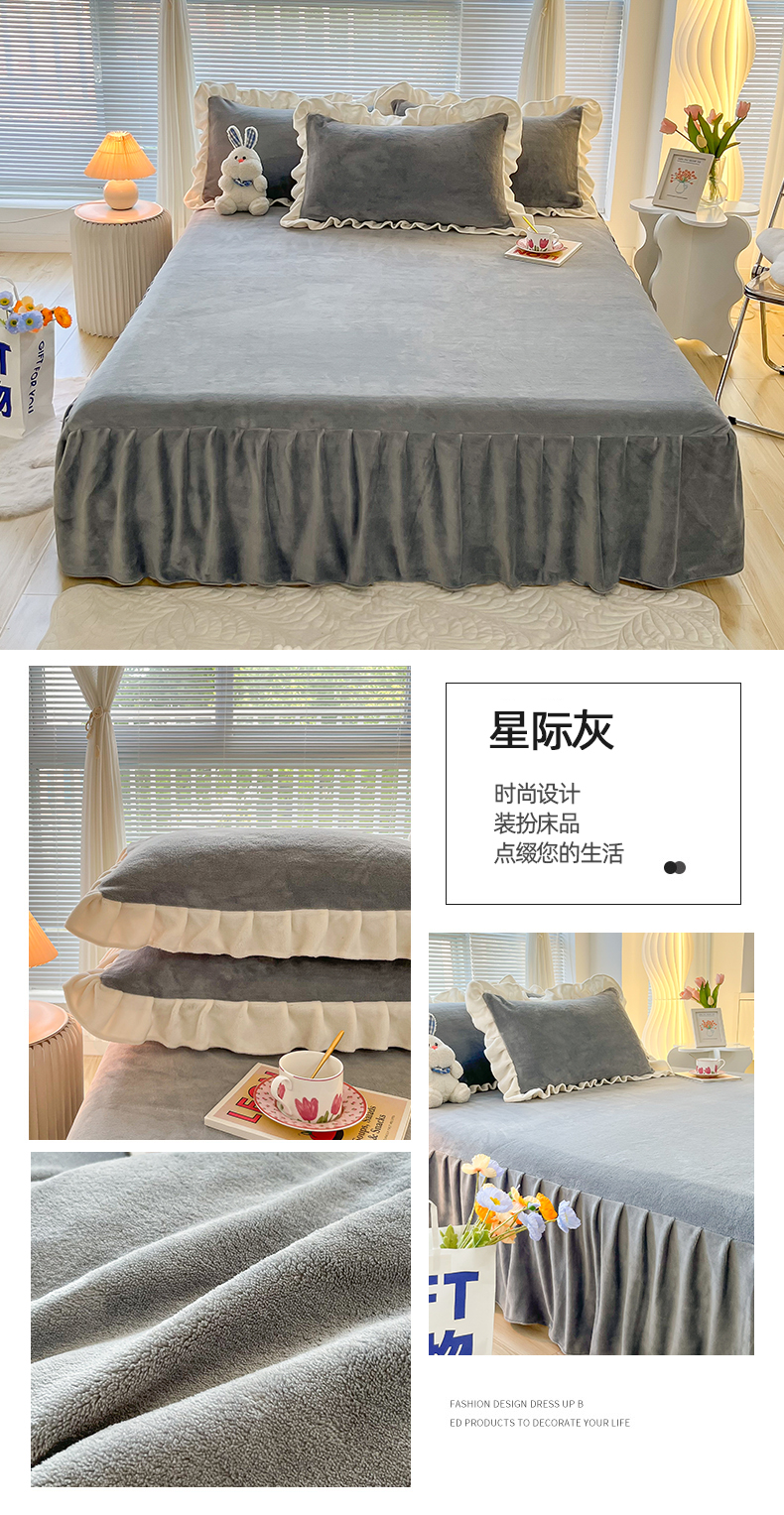 商品名称:十里居 2023新款纯色韩版花边牛奶绒单床裙三件套 星际灰