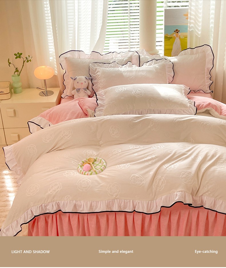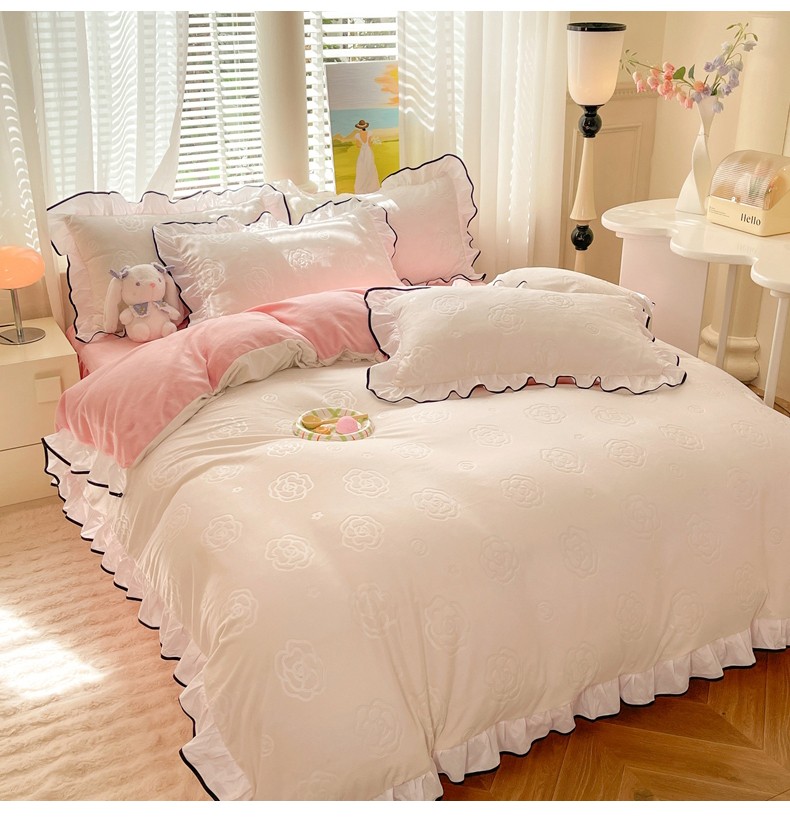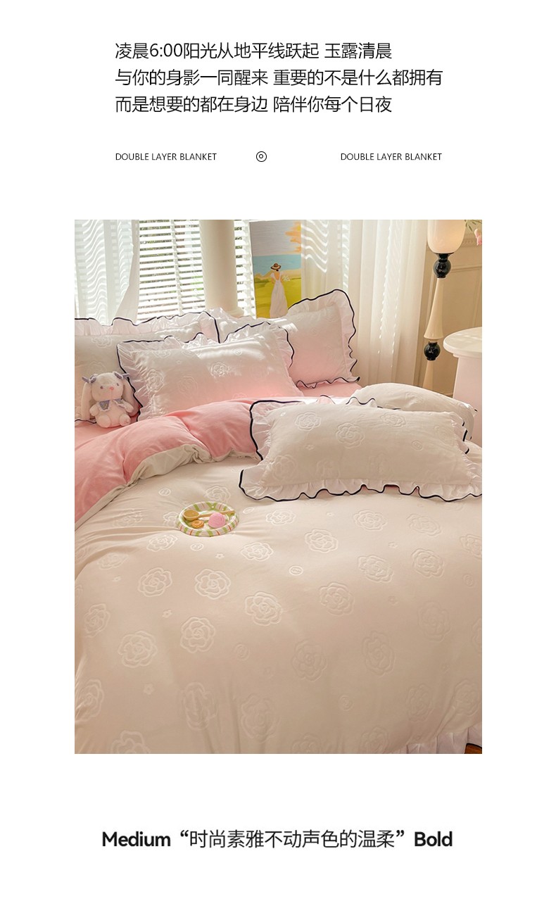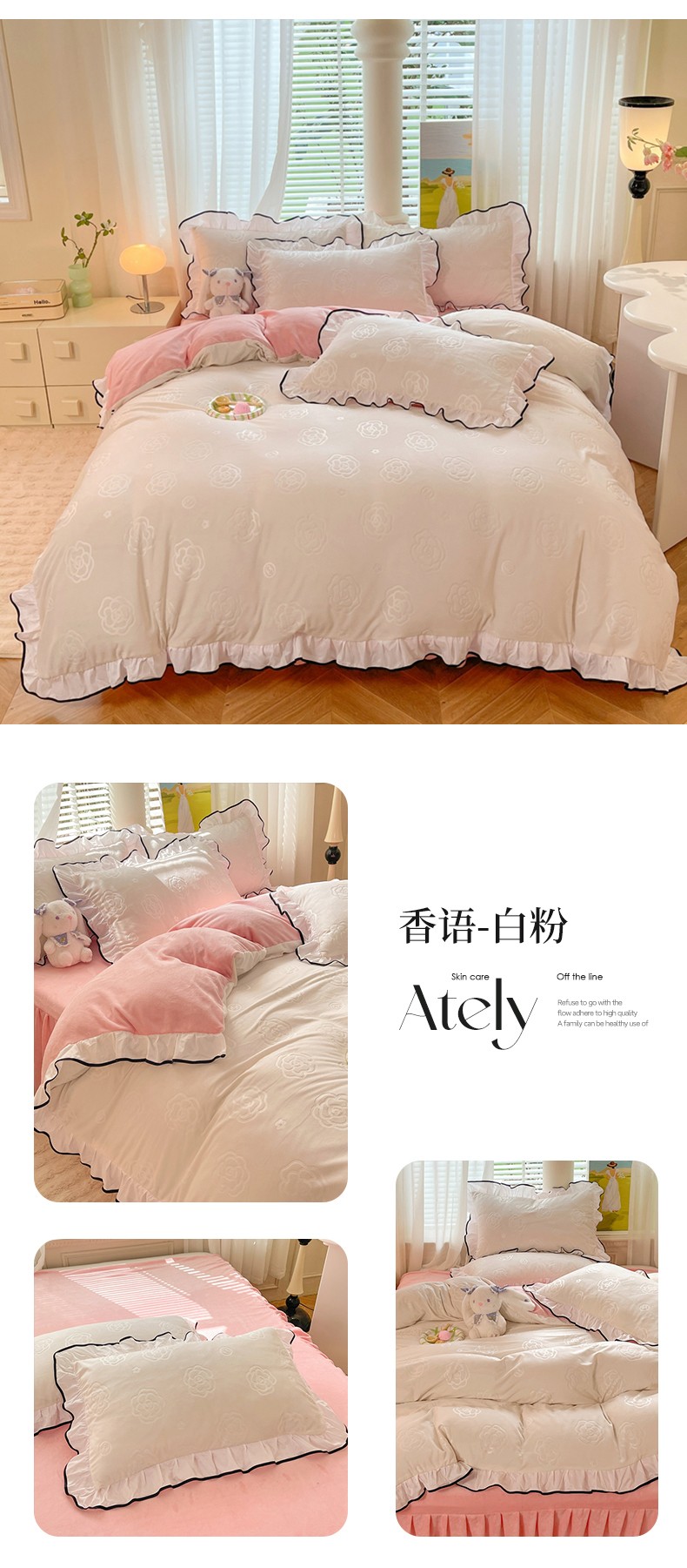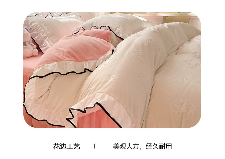 当前位置: 91家纺网 > 商品网购 > 床品套件 > 四件套 > 牛奶绒四件套 > 逸尚阁 2023新款加厚牛奶绒床裙款四件套-香语 香语-白粉