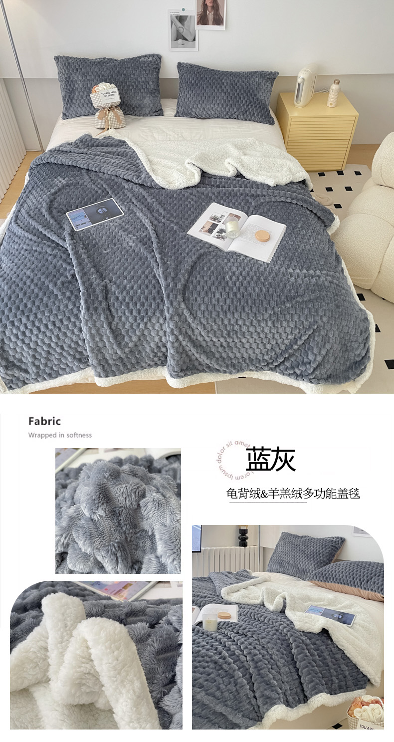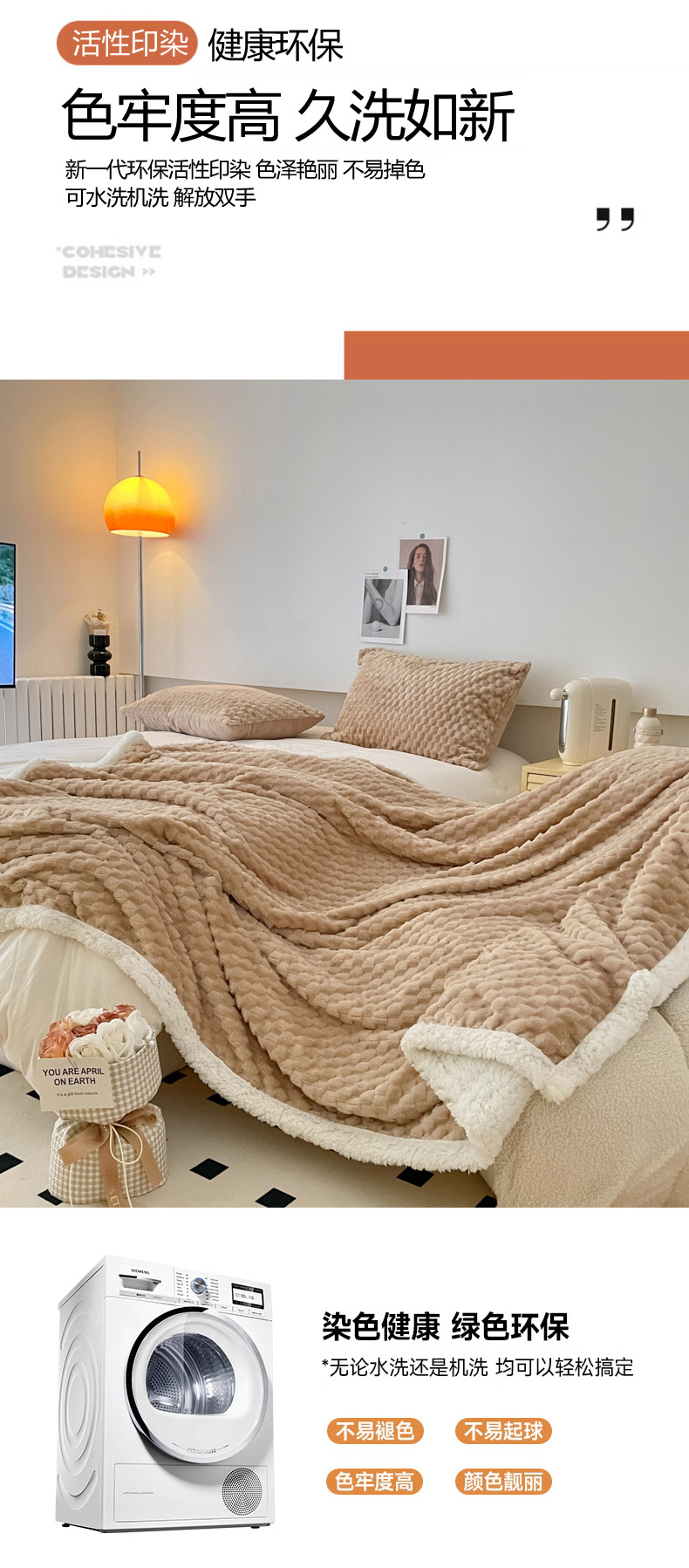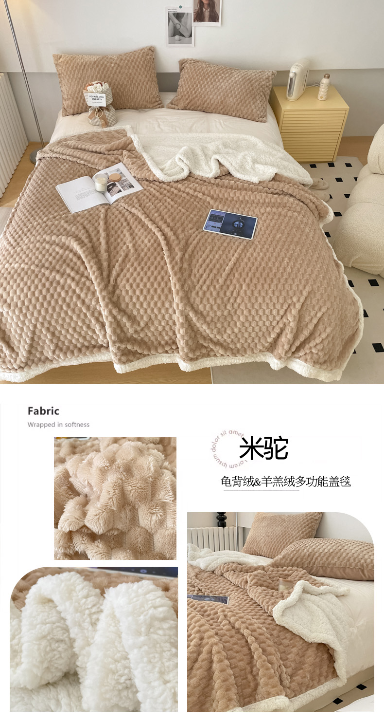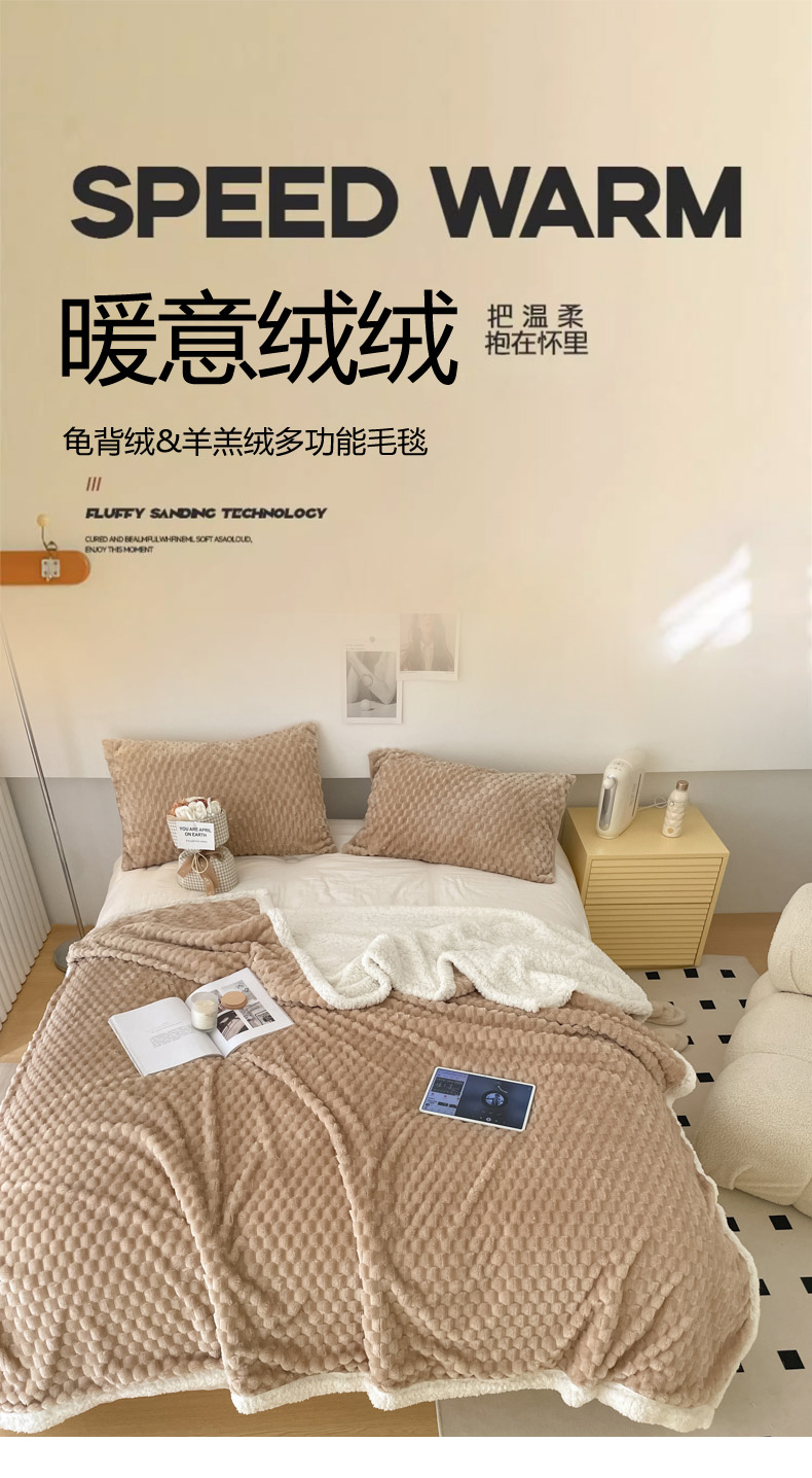 商品名称:(总)沐慕 2023新款纯色简约龟背绒拼羊羔绒毛毯
