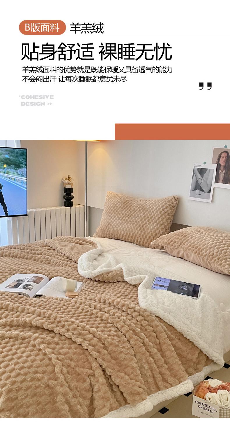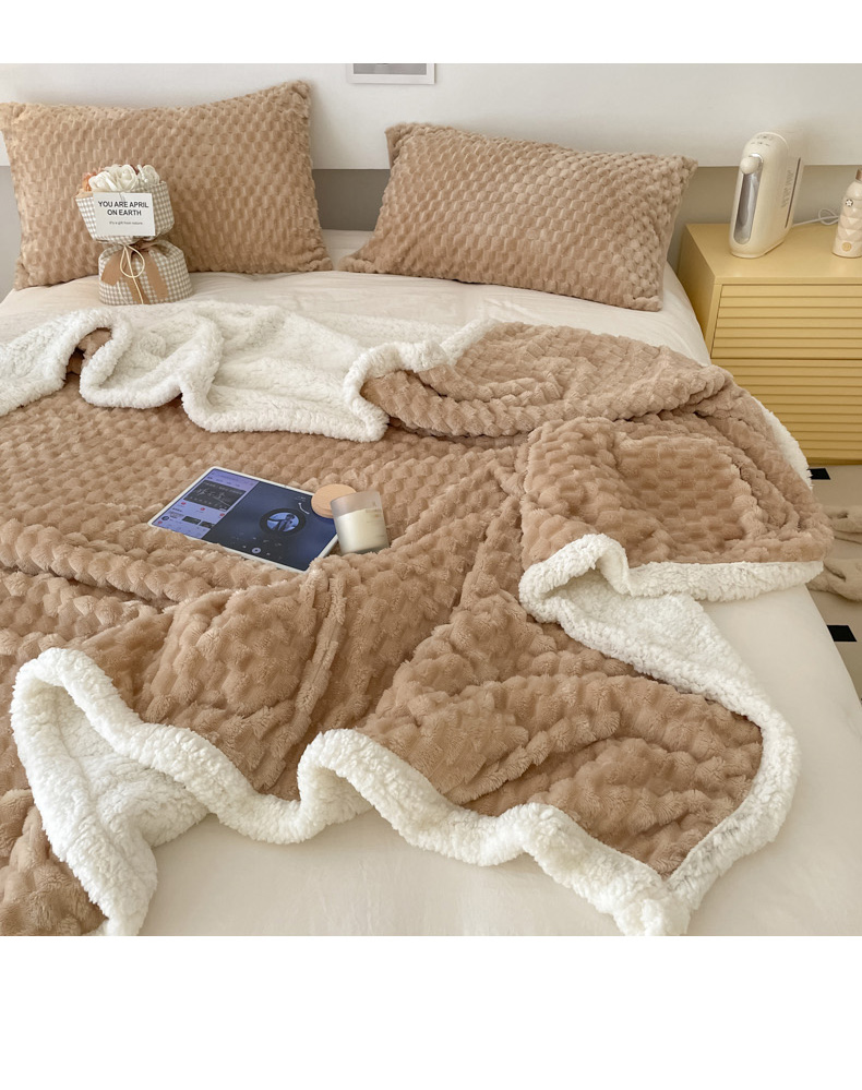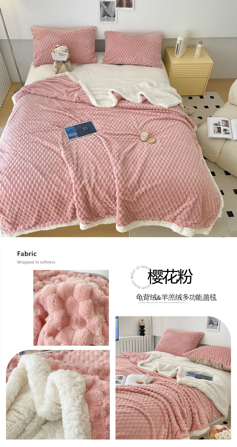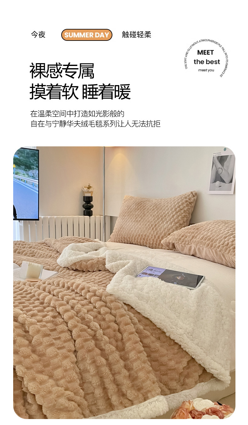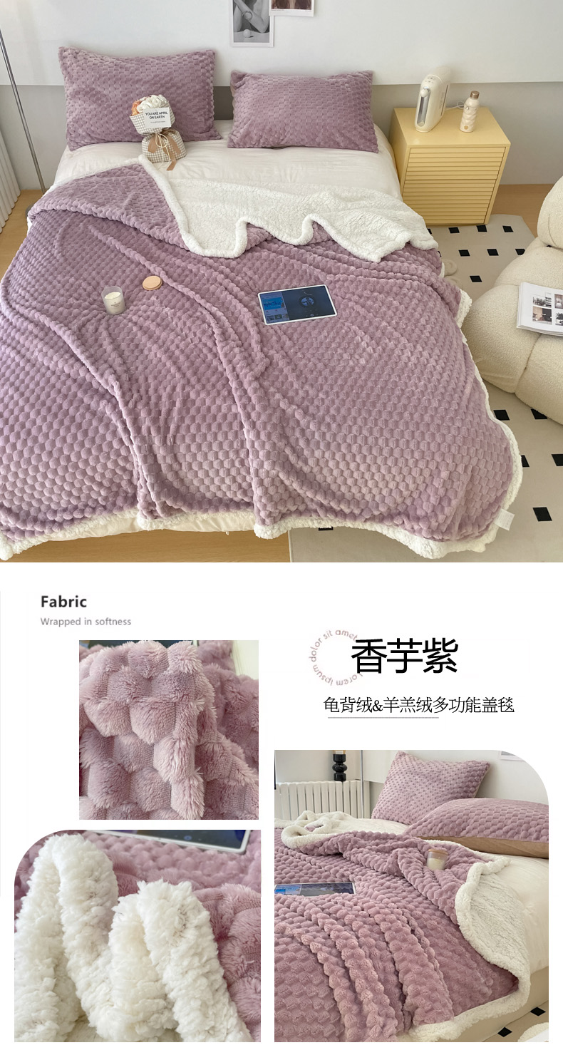 商品名称:(总)沐慕 2023新款纯色简约龟背绒拼羊羔绒毛毯