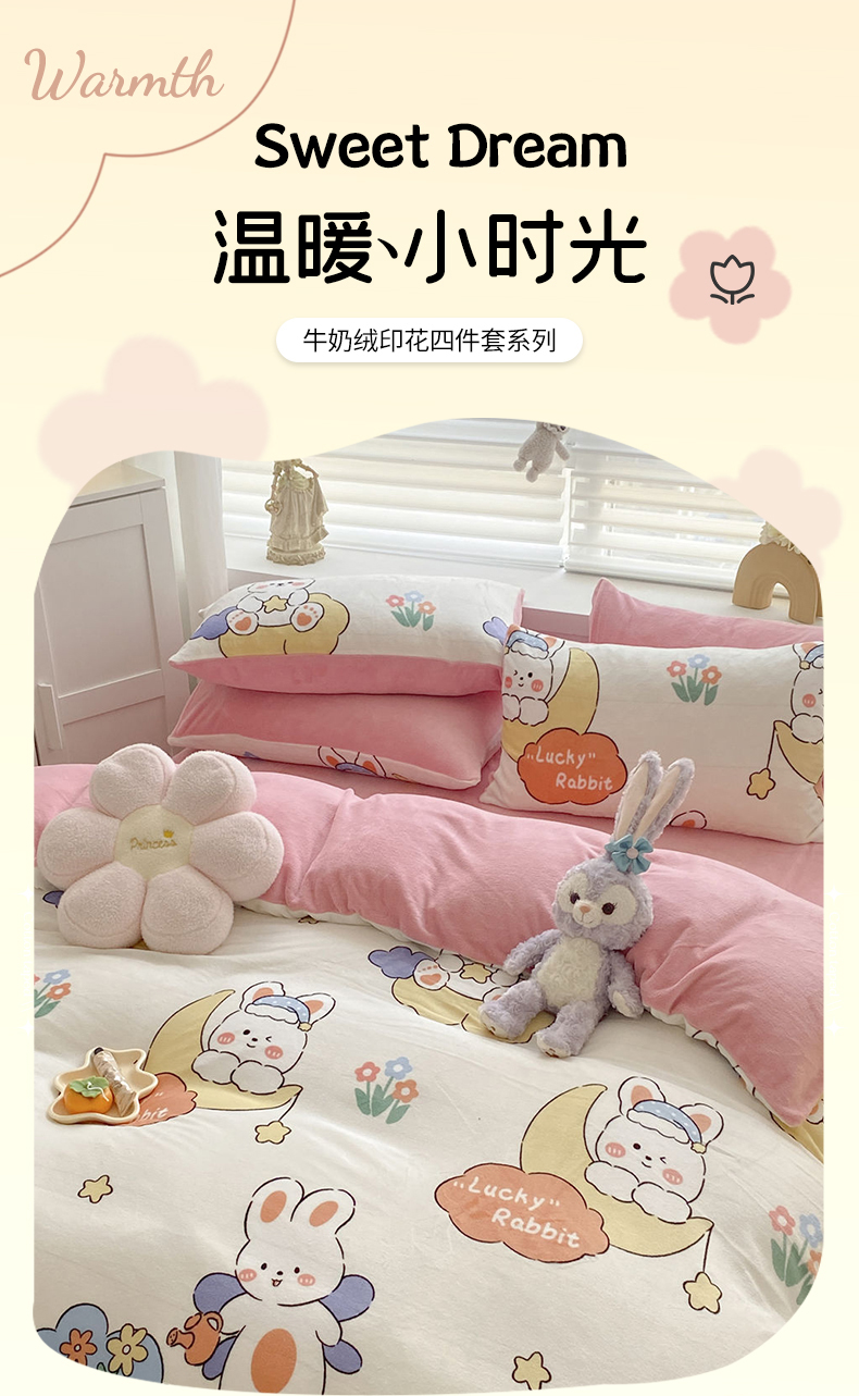商品名称:古吉梦 2023新增牛奶绒印花(跑量款) 萌兔乐园