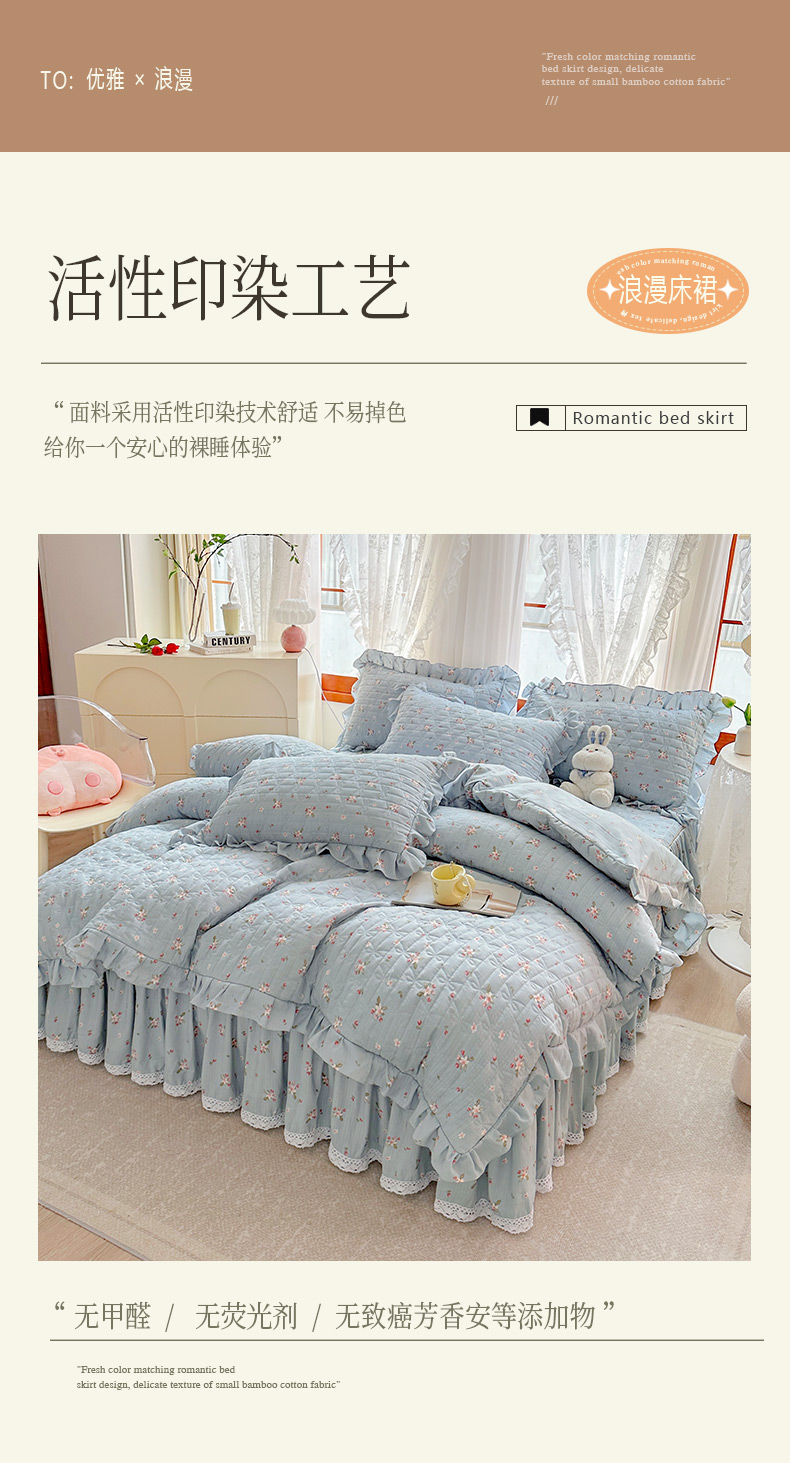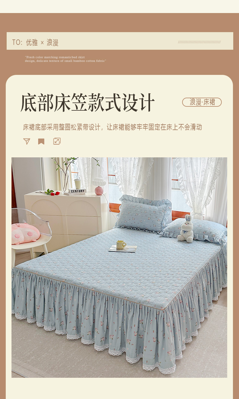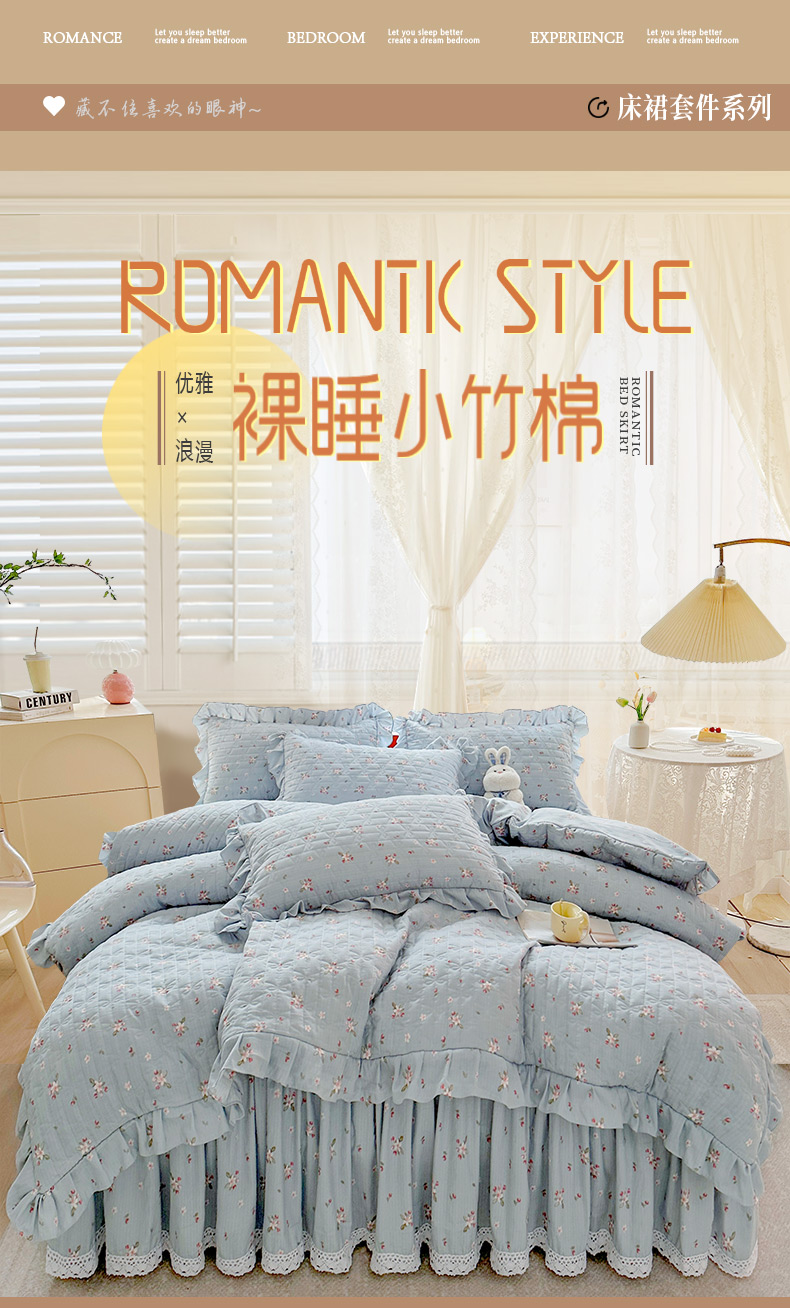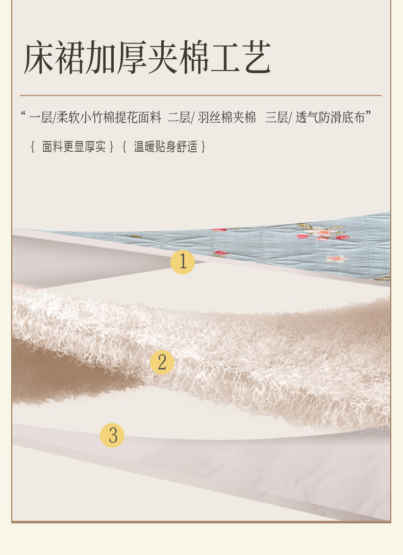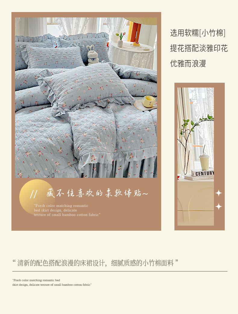 当前位置: 91家纺网 > 商品网购 > 床品套件 > 四件套 > 提花四件套 > 恋尚 2023新款小竹棉提花床笠式床裙夹棉四件套 花期