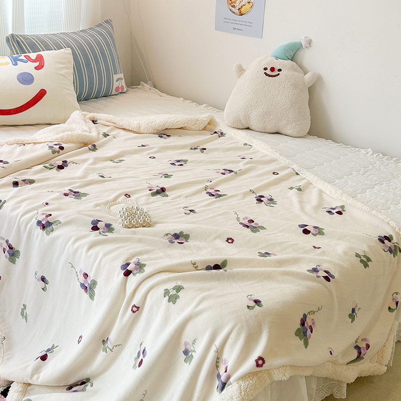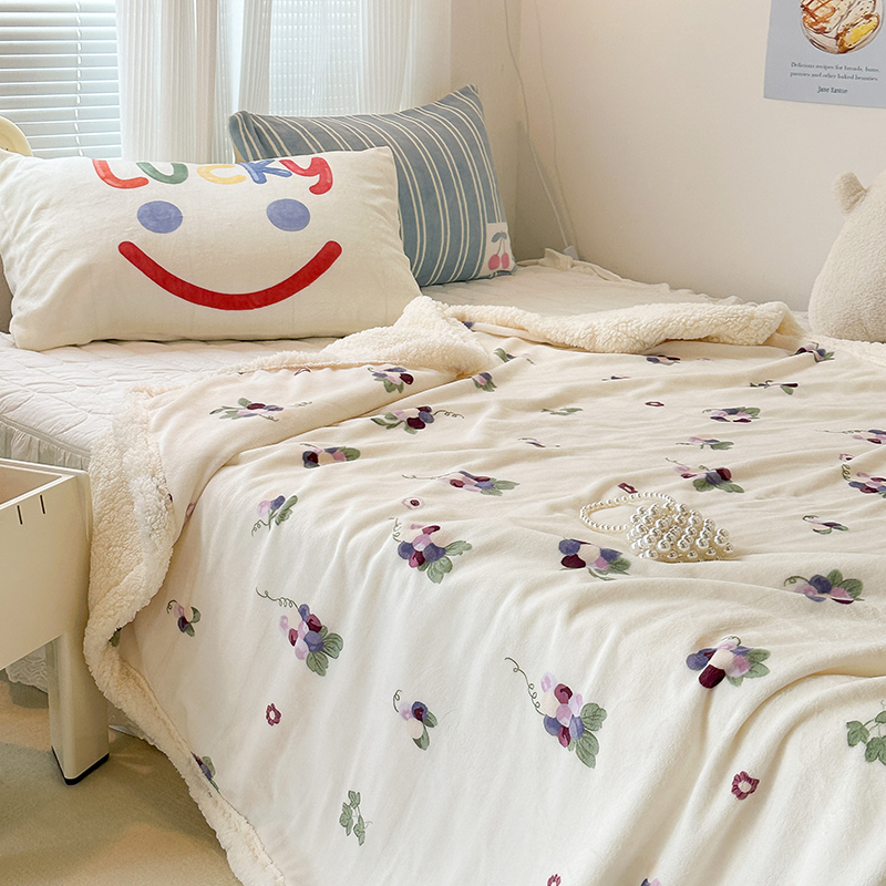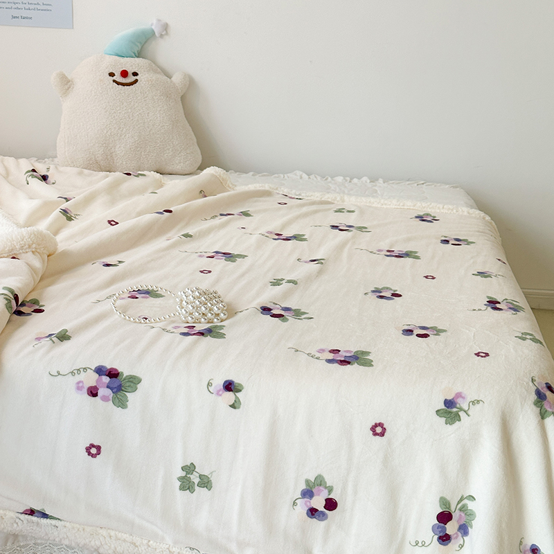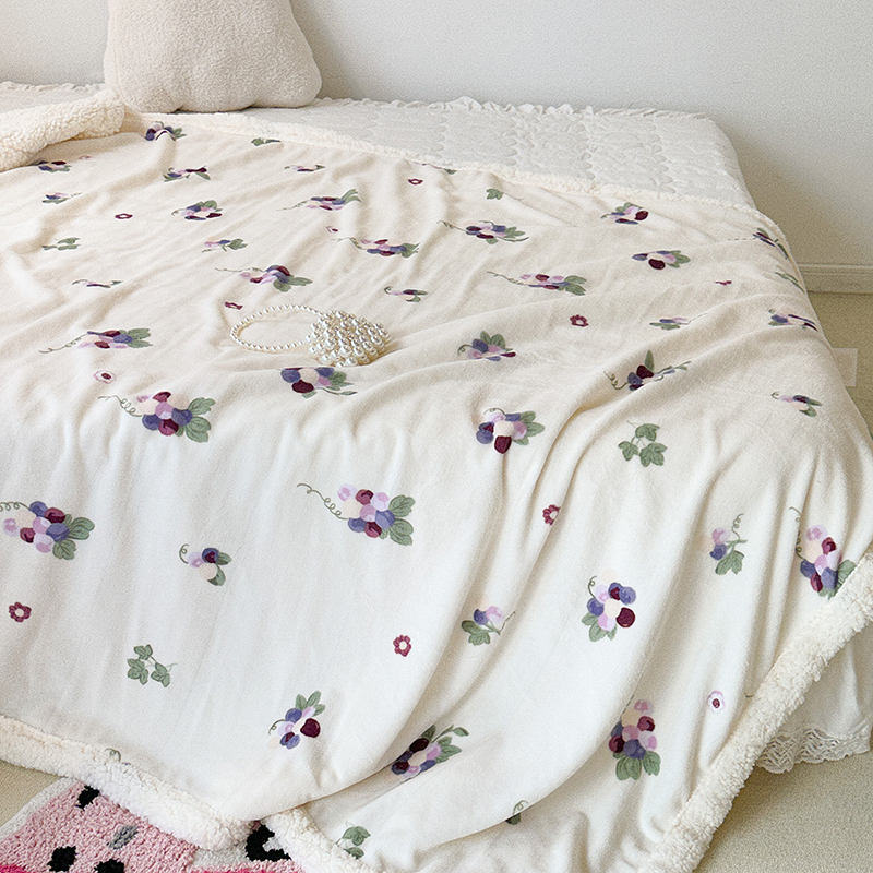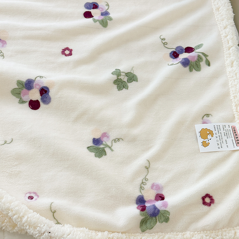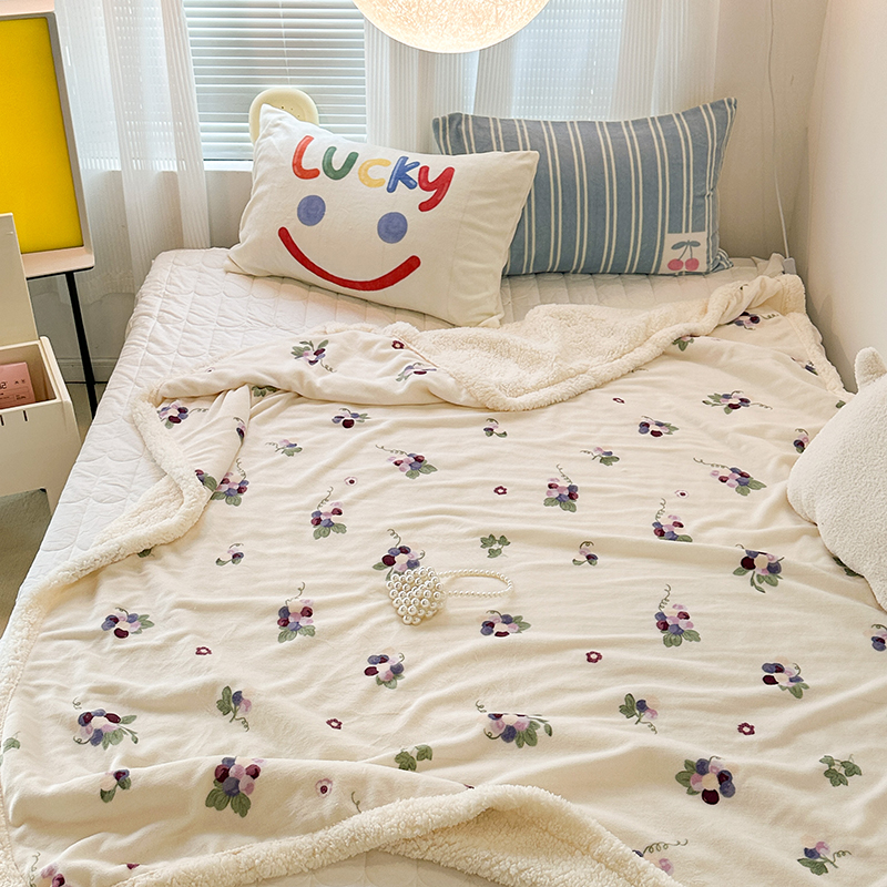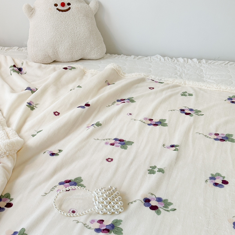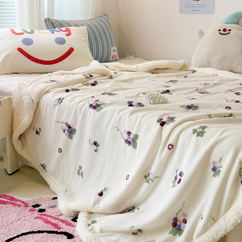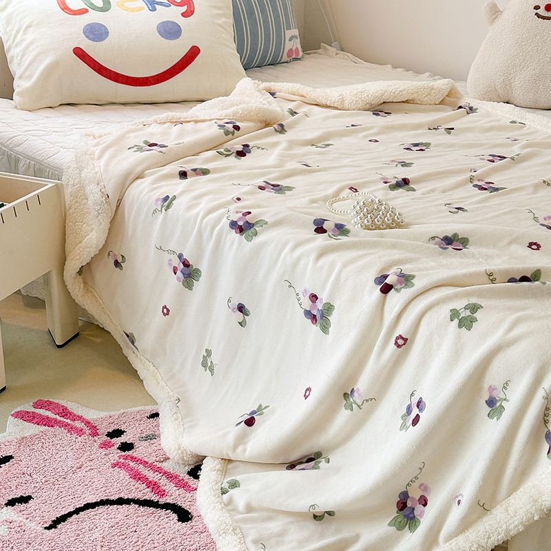 昔可家纺 2023新款ins风牛奶绒羊羔绒印花毛毯(风格一) 紫色葡萄