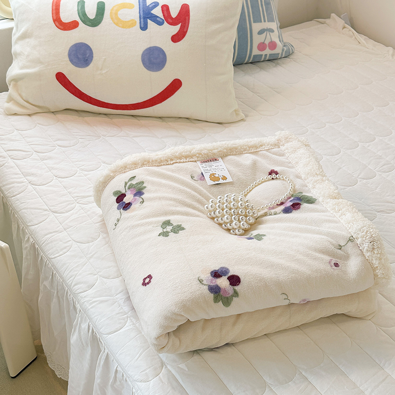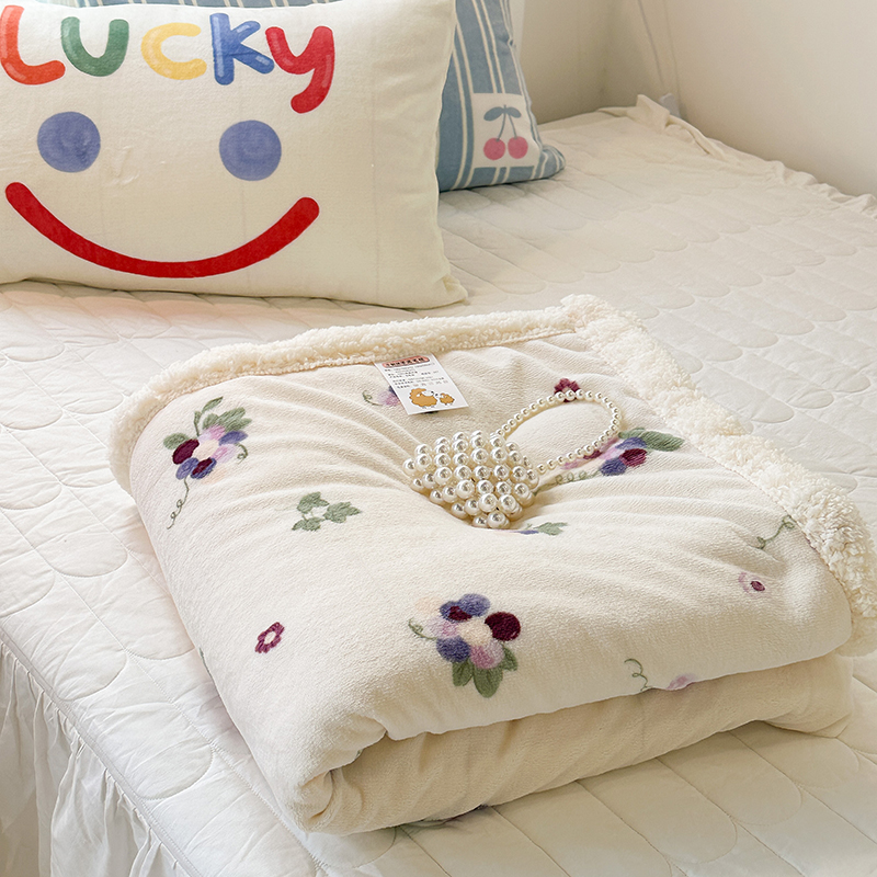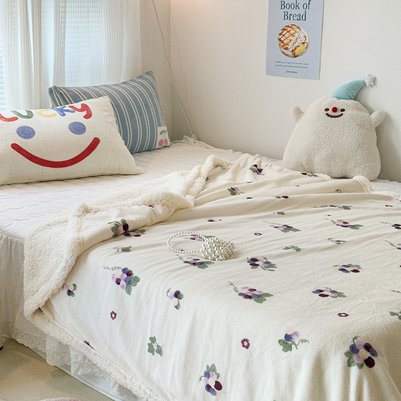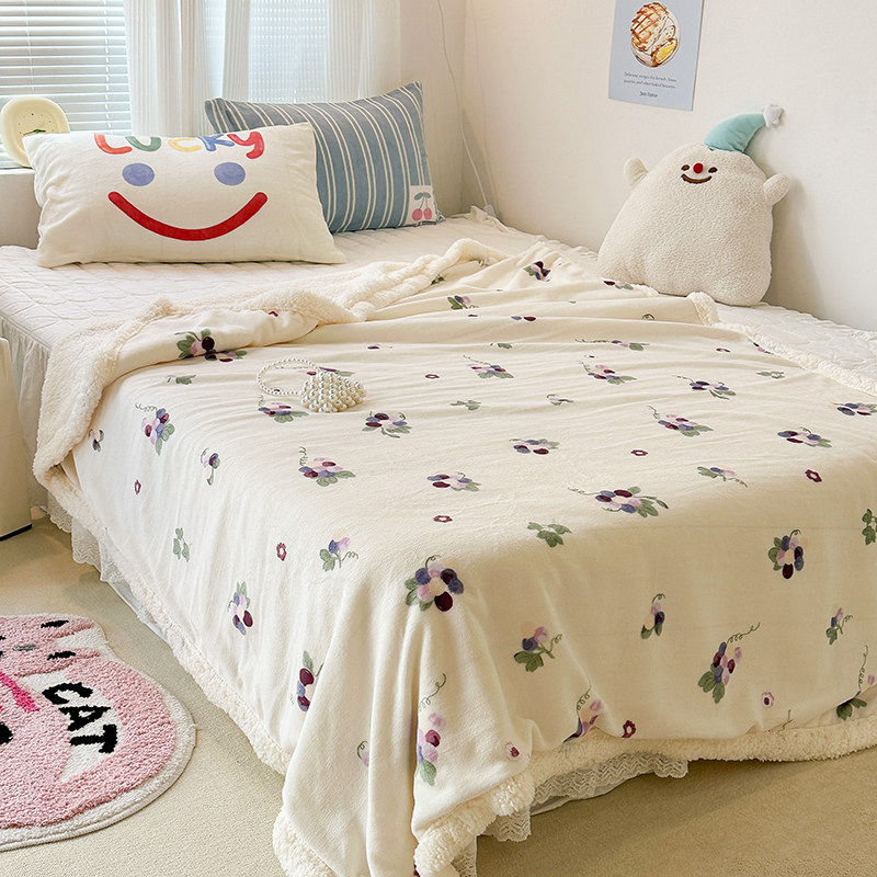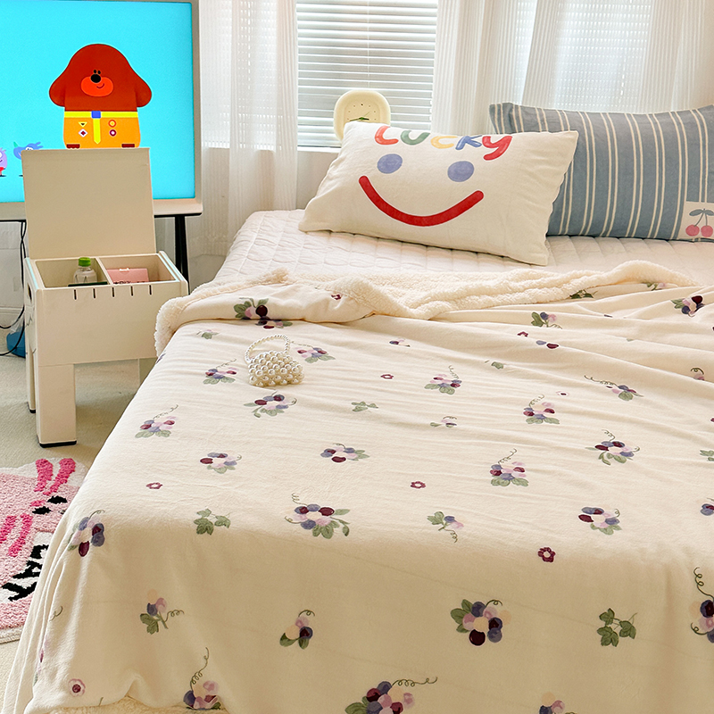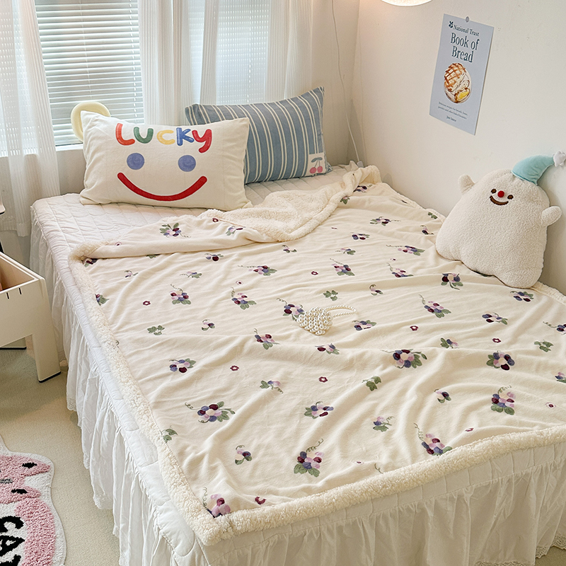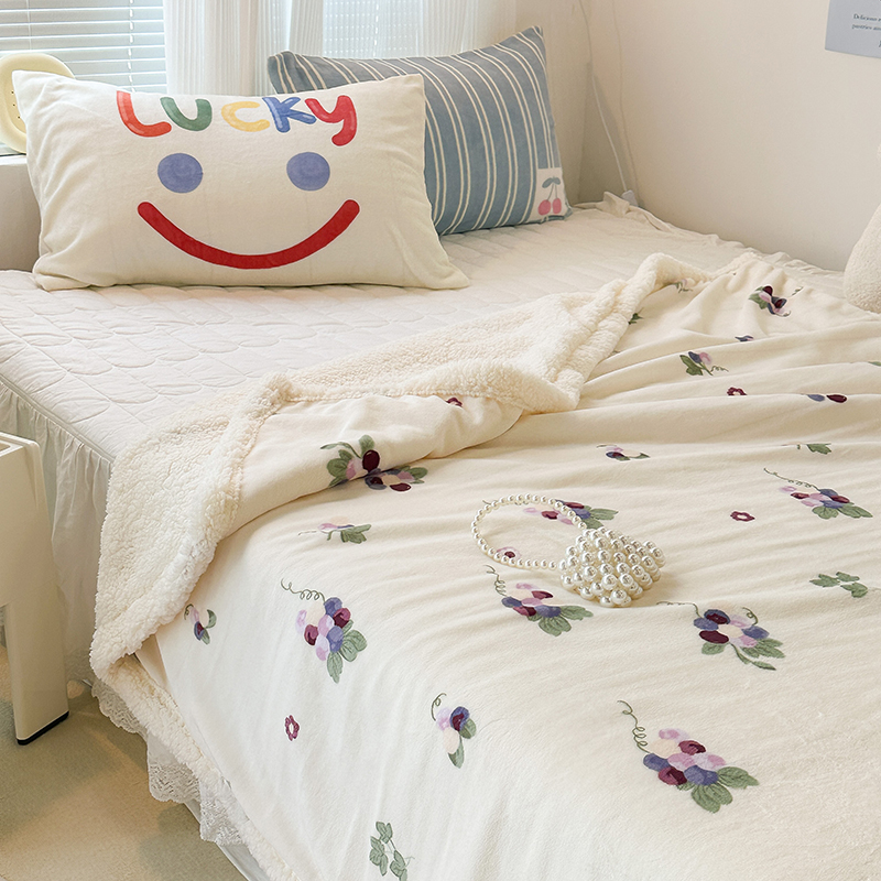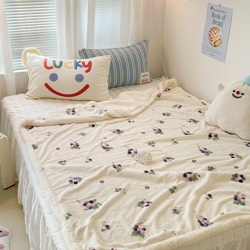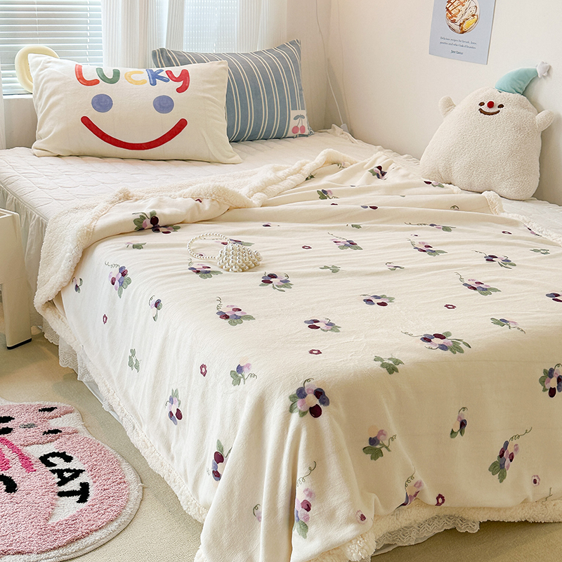 昔可家纺 2023新款ins风牛奶绒羊羔绒印花毛毯(风格一) 紫色葡萄