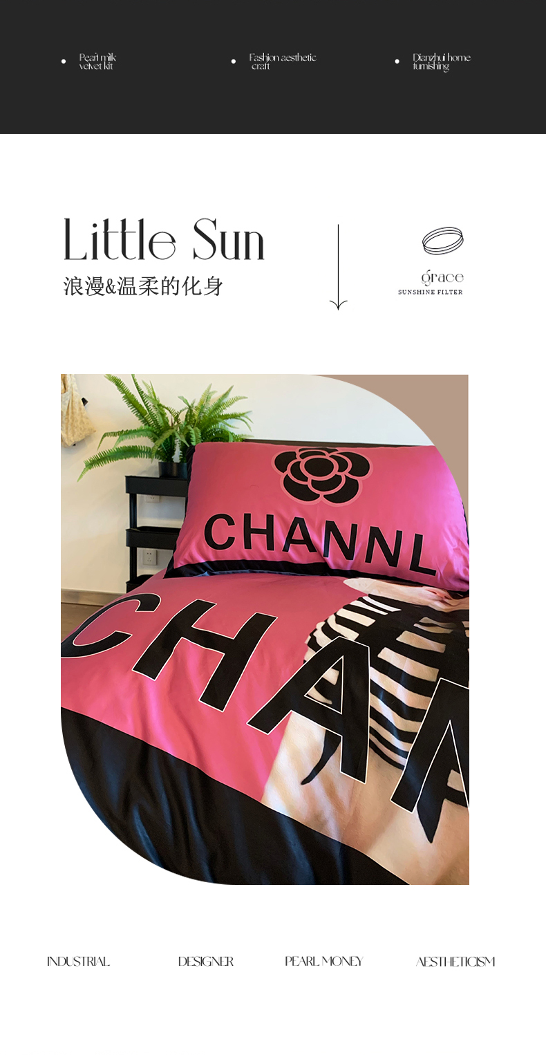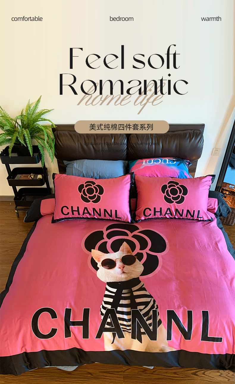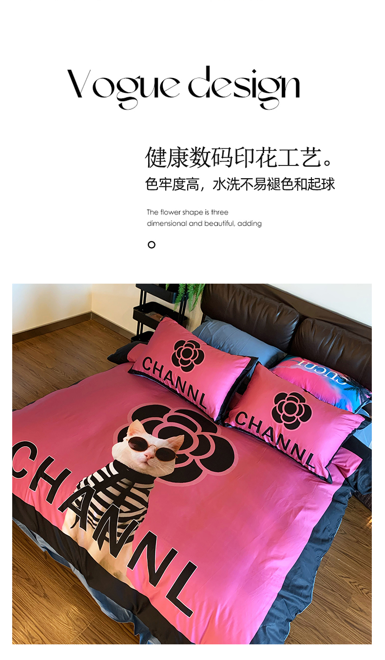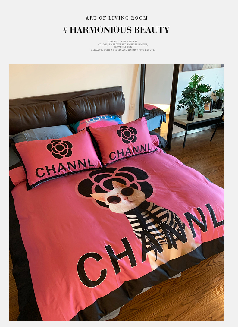 (总)色鬼布艺高端家居主号 2025新款轻奢亲肤纯棉数码印花网红热款四件套,豹纹香,白金V,白香花,大H,黑白迪,黑白V,灰迪,咖古,克莱因,慕斯小姐,山茶花,星空