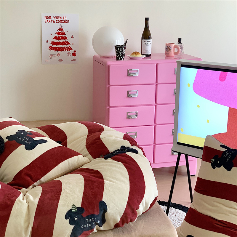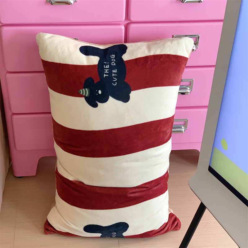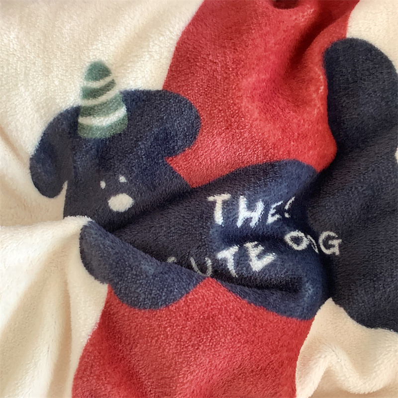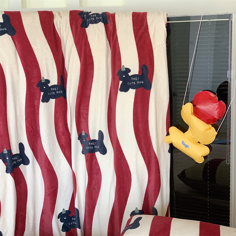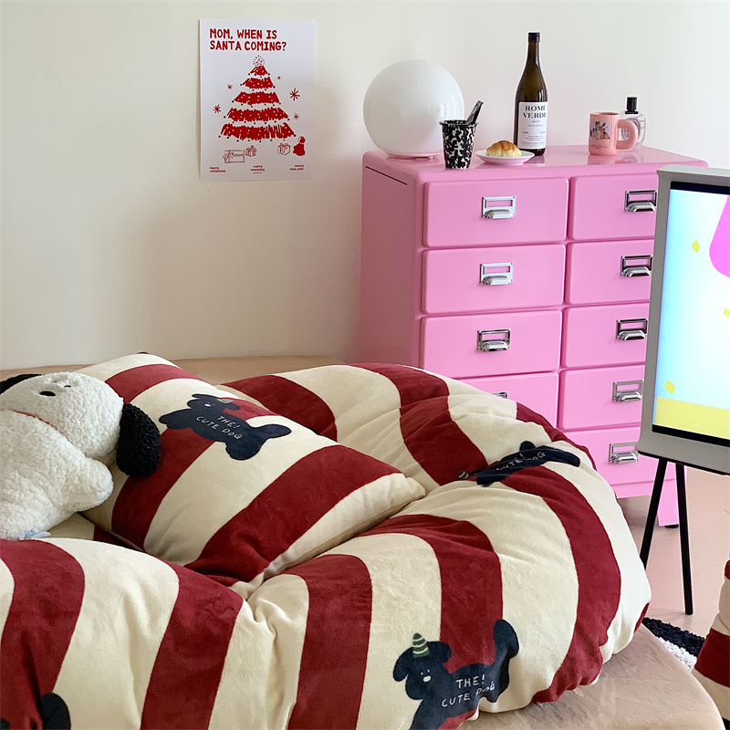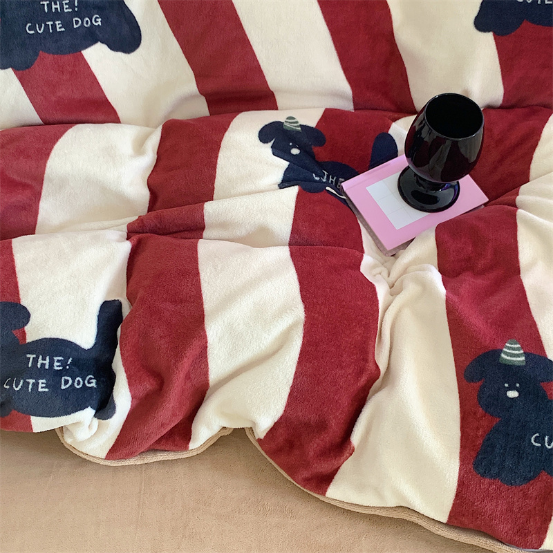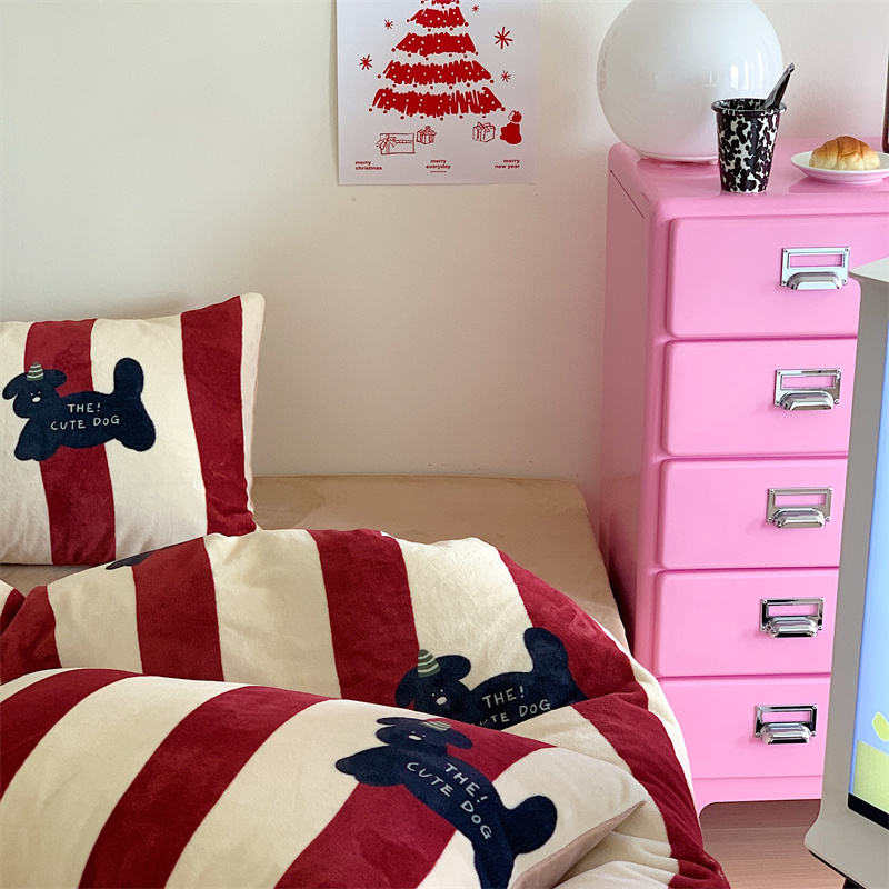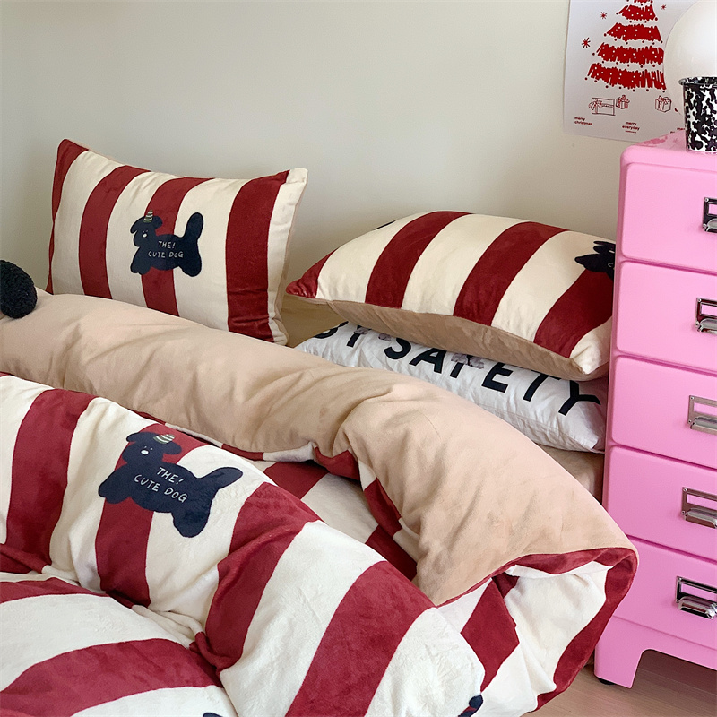 商品名称:星期八 2023新款210g双面牛奶绒印花四件套 条纹狗狗红