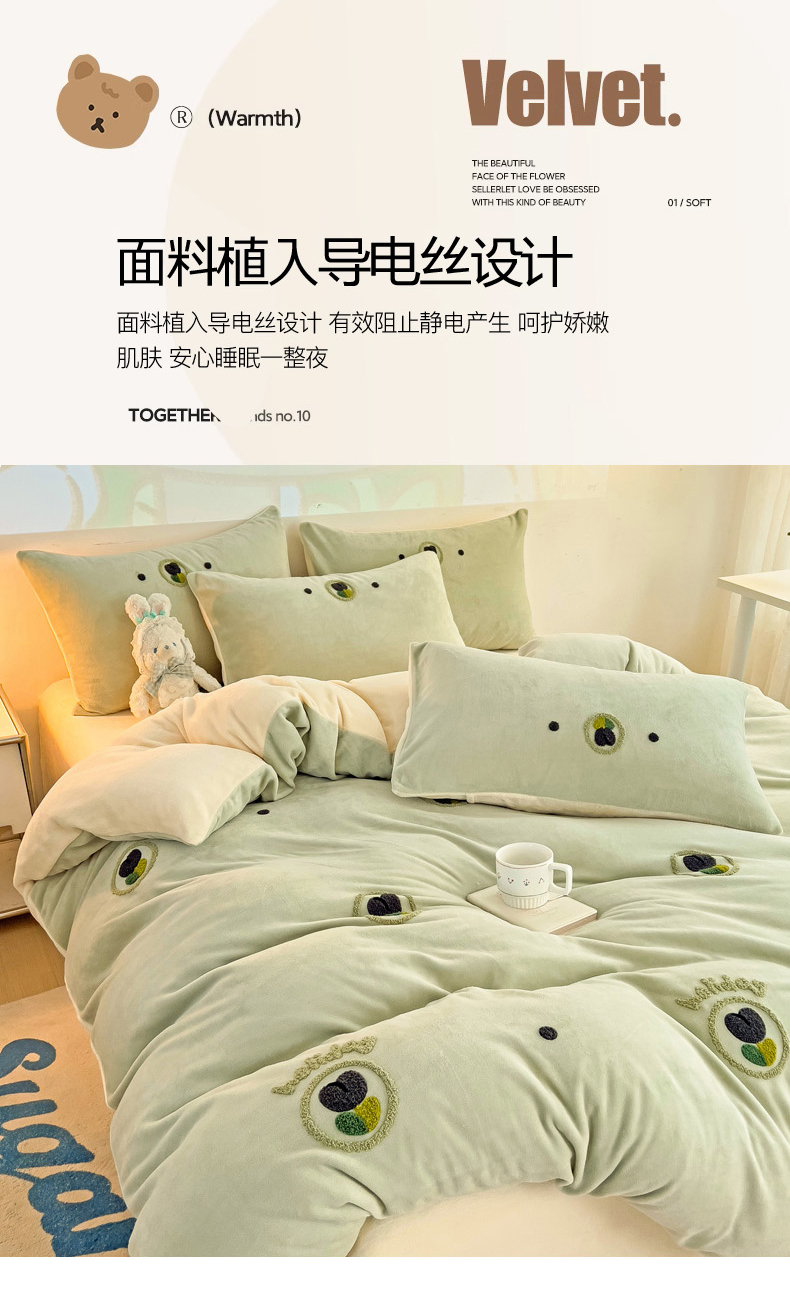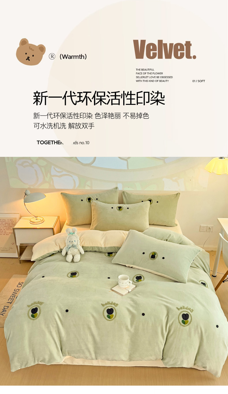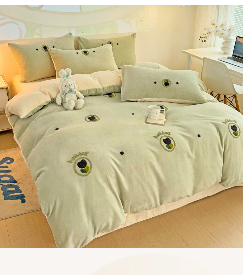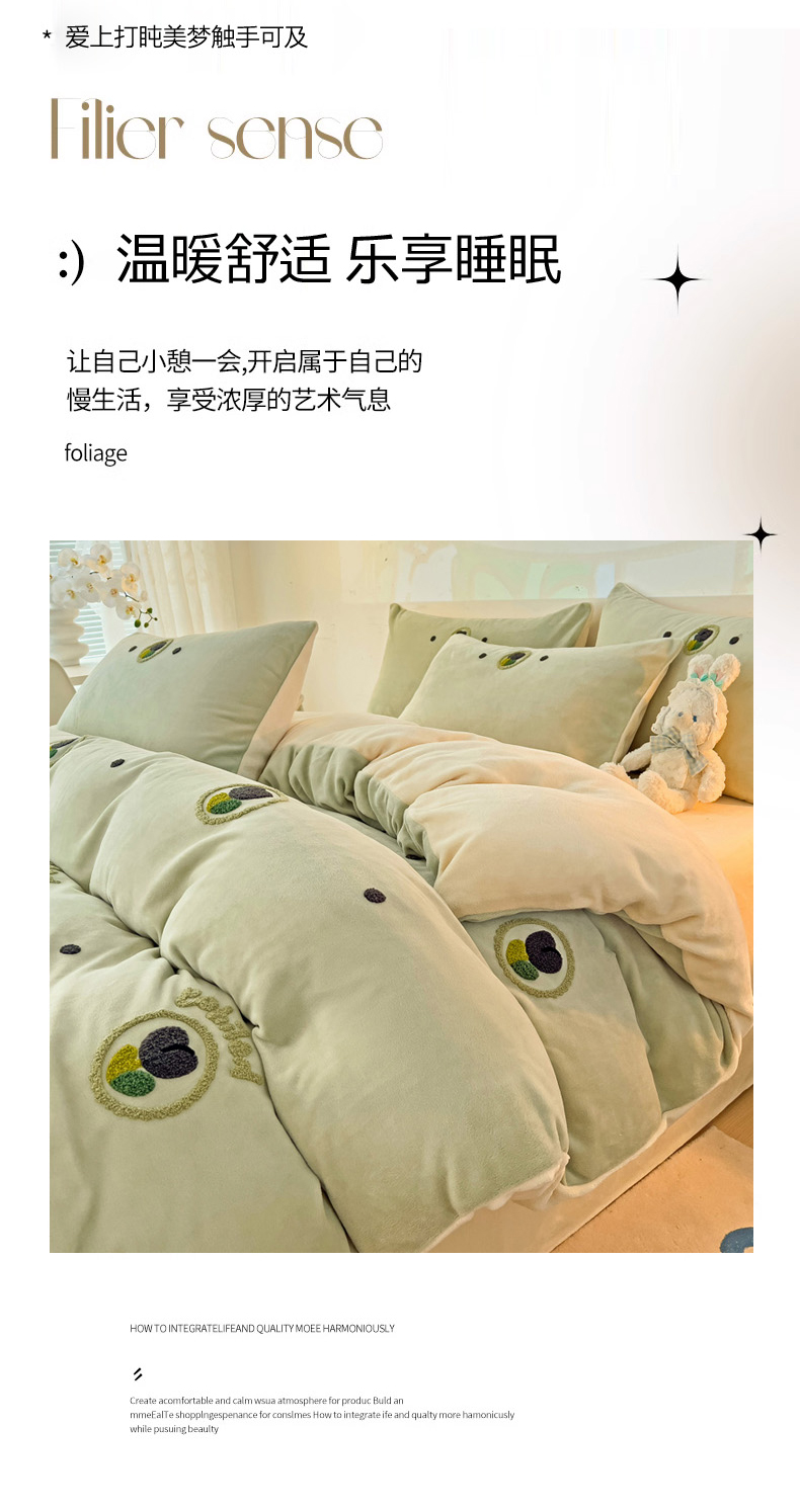 寐居家纺 2023毛巾绣牛奶绒四件套 典雅-嫩绿