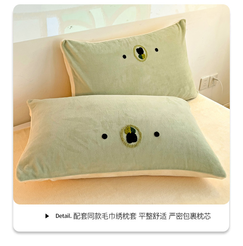 (总)寐居家纺 2025新款A类牛奶绒毛巾绣床盖,组合,格纹萌犬,红果果,萌兔有约,年年有鱼,甜心小骑,星伴小象