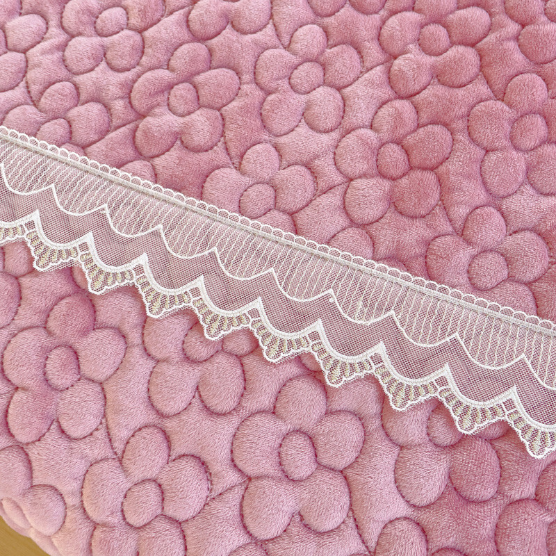 商品名称:2023直播爆款纯色牛奶绒床盖床裙款蕾丝边素色婴儿绒床盖 蝴蝶结-浅粉