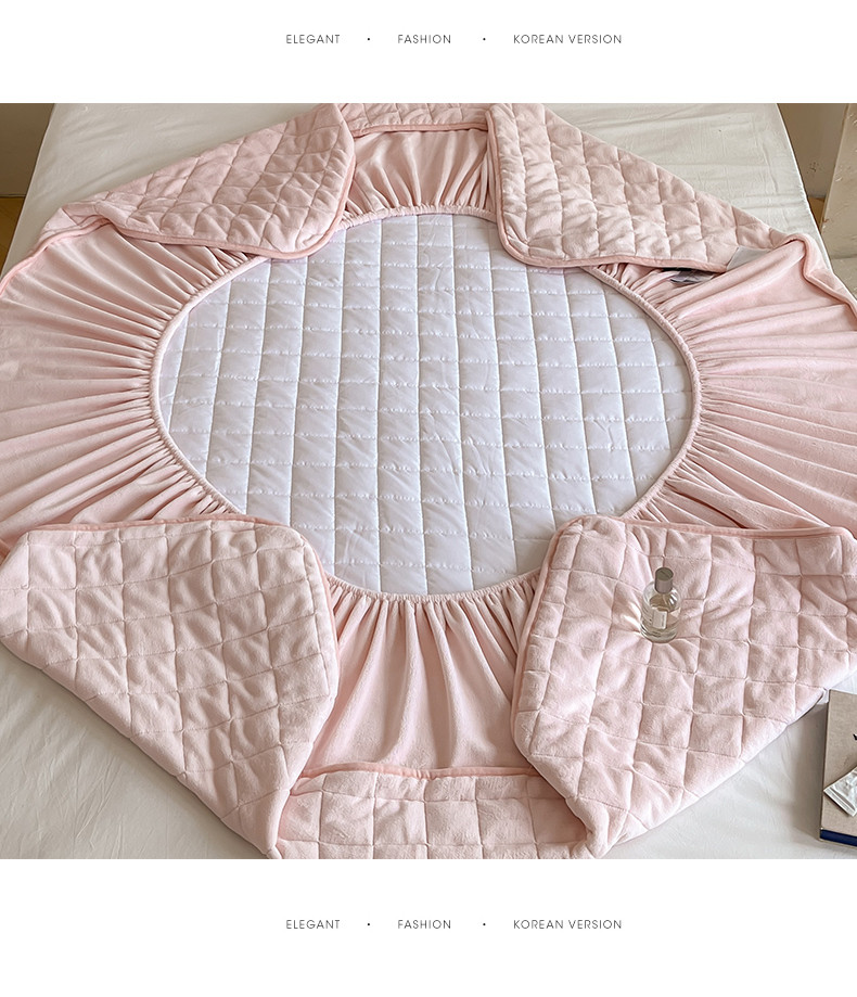 三味舒屋 2024新款牛奶绒夹棉床笠 方格冰激淋粉