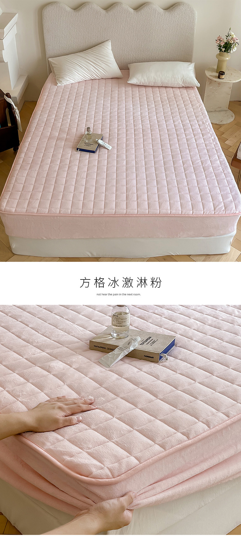 商品名称:三味舒屋 2024新款牛奶绒夹棉床笠 方格冰激淋粉