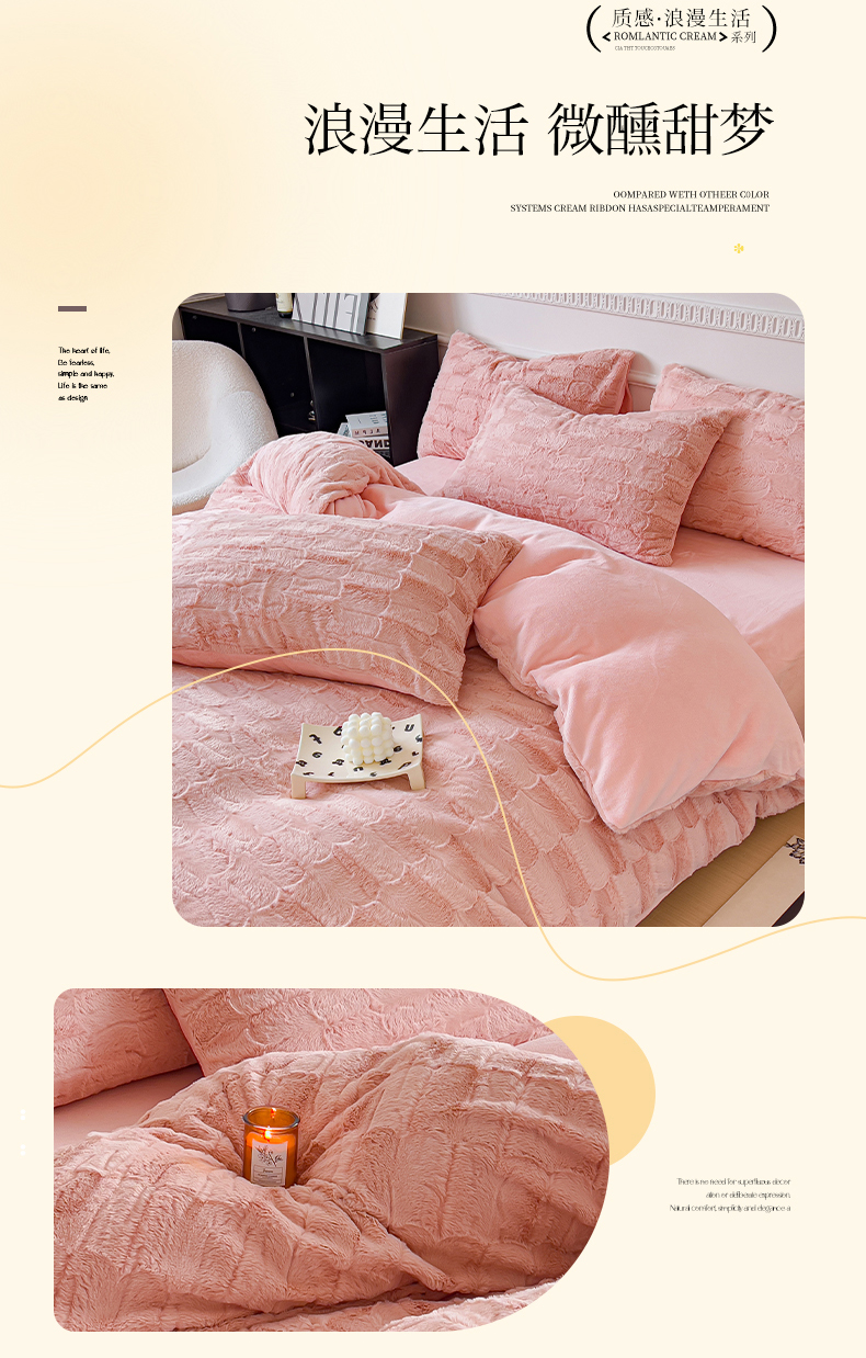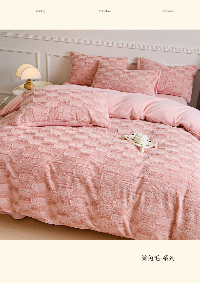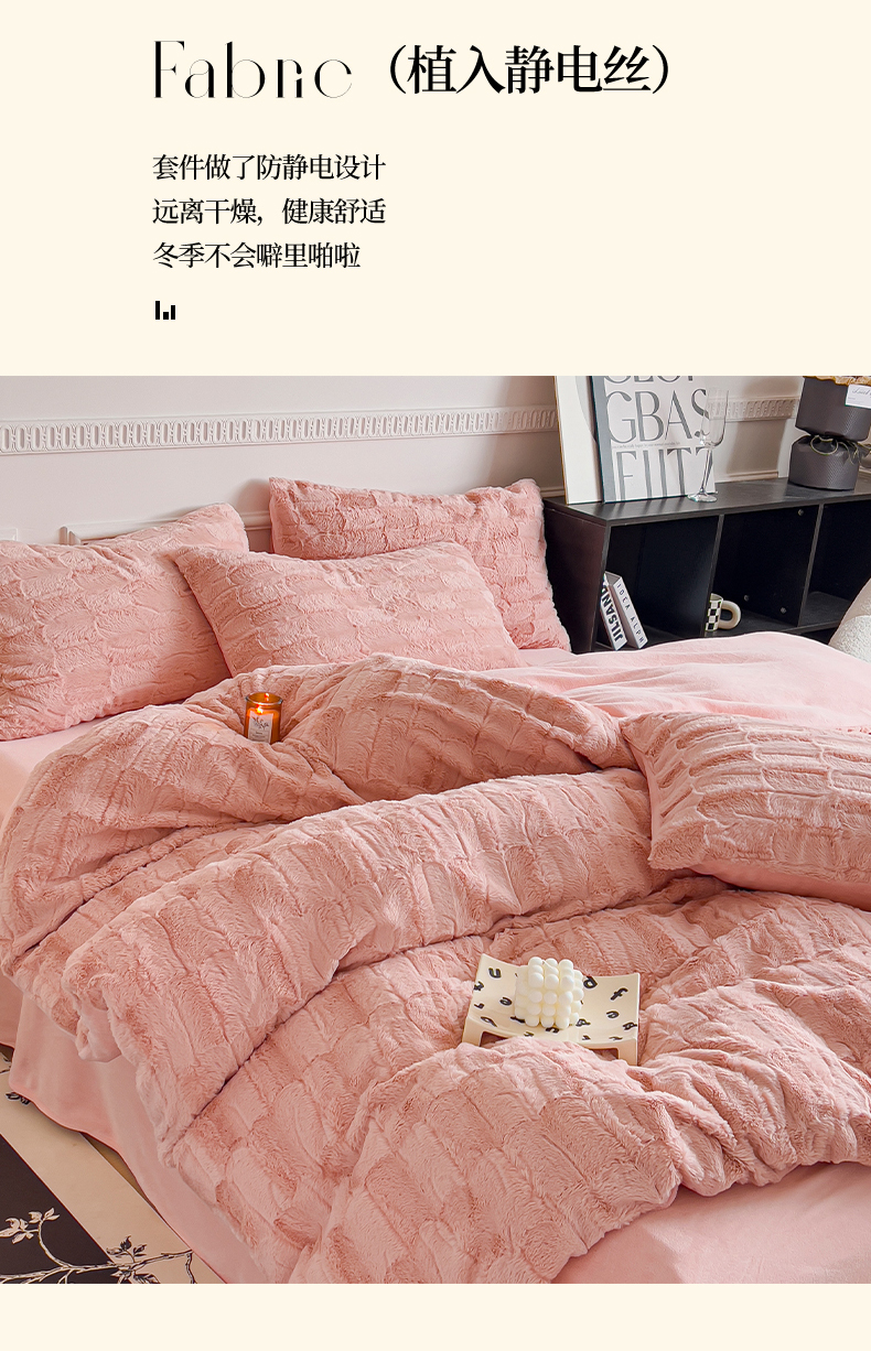 商品名称:木堇 2023新款兔毛绒牛奶绒四件套 濑兔毛--蜜桃粉