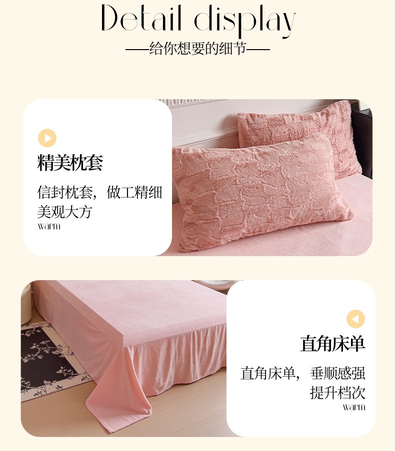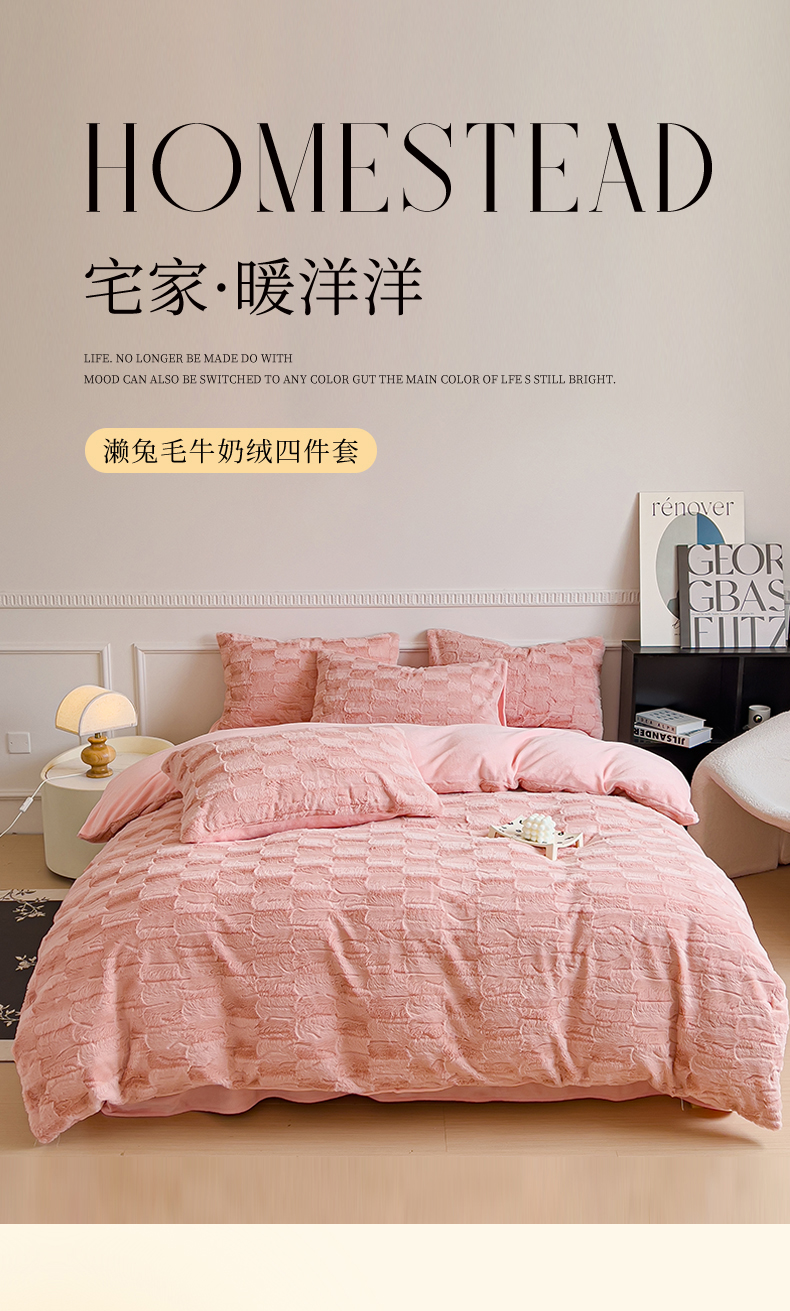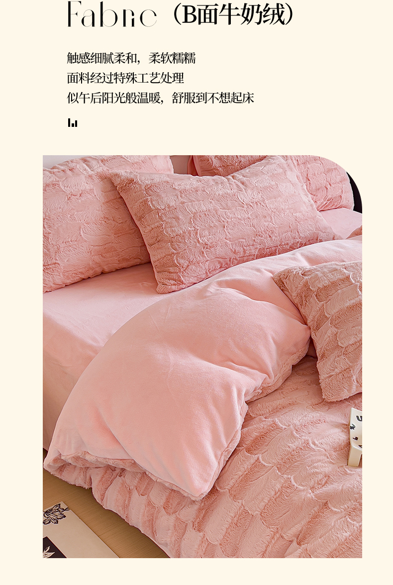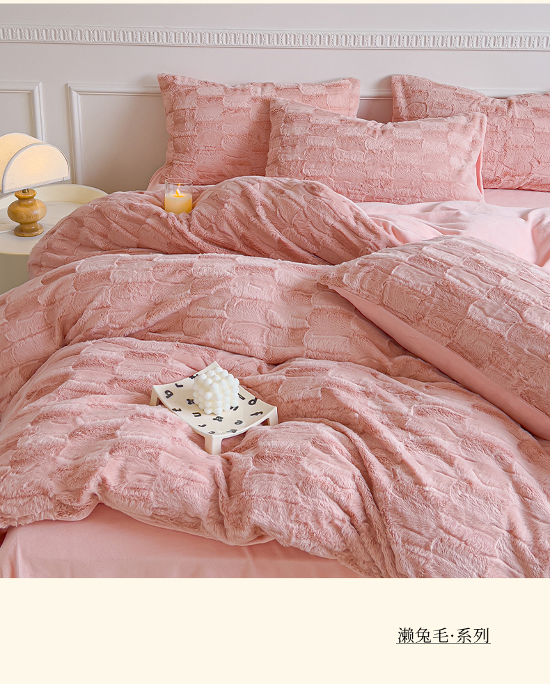 商品名称:木堇 2023新款兔毛绒牛奶绒四件套 濑兔毛--蜜桃粉