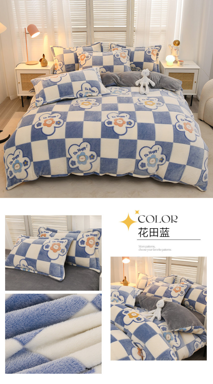 商品名称:昊川 2024新款雪花绒加厚保暖四件套花田蓝