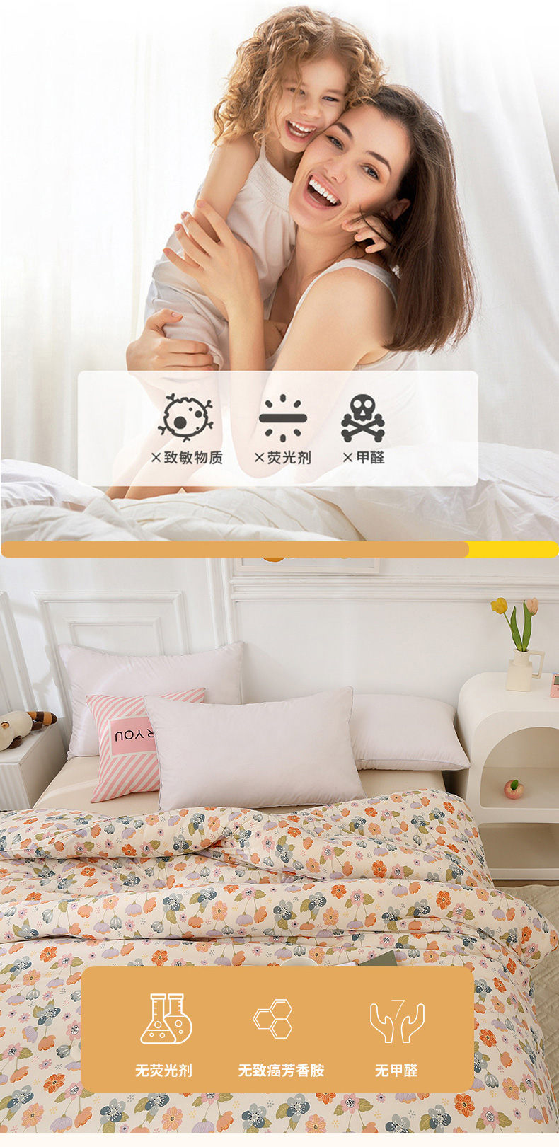 • 填充纤维种类: 大豆蛋白改性聚酯纤维